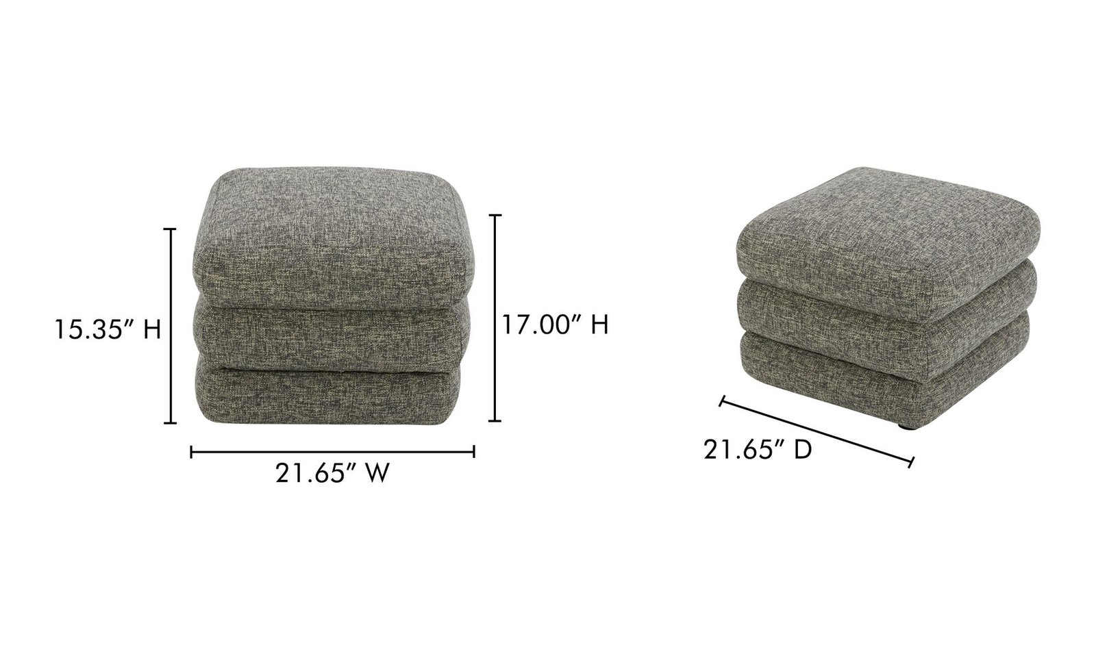 Influenced by the playful forms of the 1970s the Lowtide stool showcases a layered appearance that promotes comfort. Its vintage influence and understated elegance are enhanced by the use of textured fabric. On its own or combined as a modular sectional this piece adds visual interest while allowing for creative arrangement possibilities.. Dimensions: 21.65? W X 21.65? D X 15.35? H
