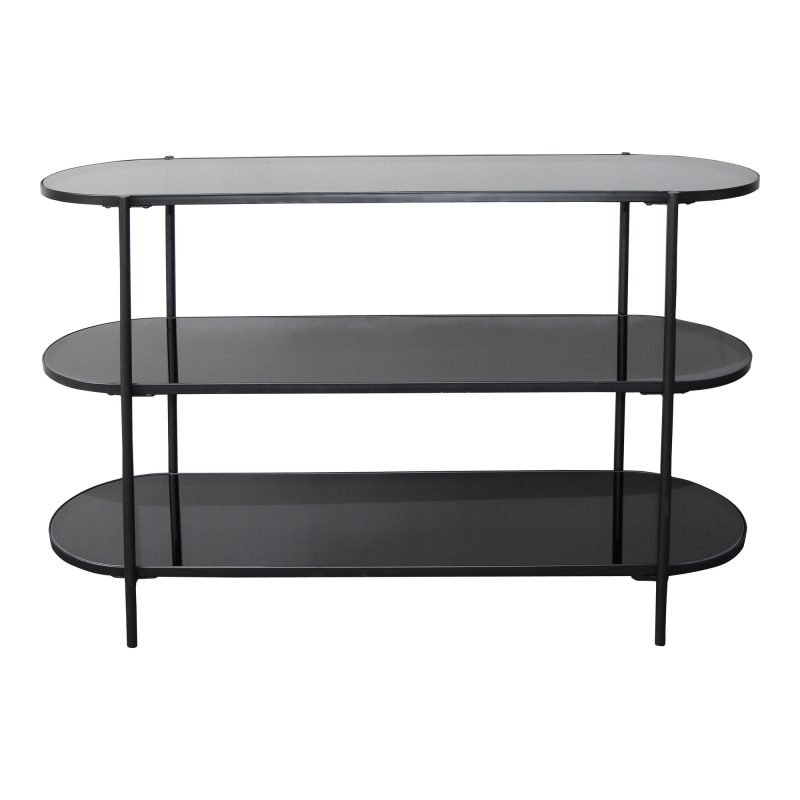 A minimalist marvel Lozz is a console table to refine and define. An architectural metal frame elevates this table bringing height and slender beauty to its stark elegance. Tempered glass shelves leave plenty of room for your treasures and objects while maintaining a thoroughly contemporary look to add some reflective flair to your living area. Geometry and inspiration meet with Lozz to create a piece that?s both practical and simply stunning.. Dimensions: 47.25? W X 15.5? D X 31.5? H