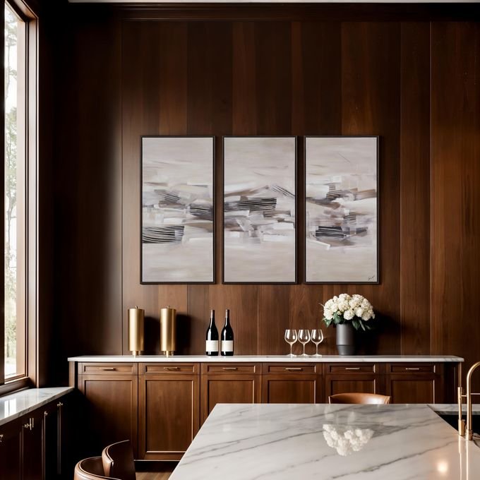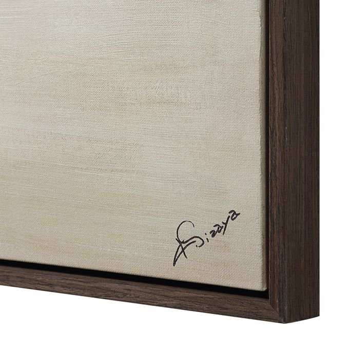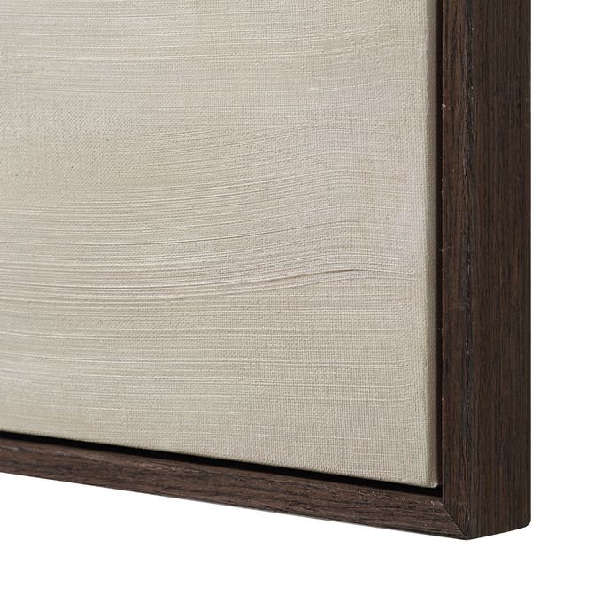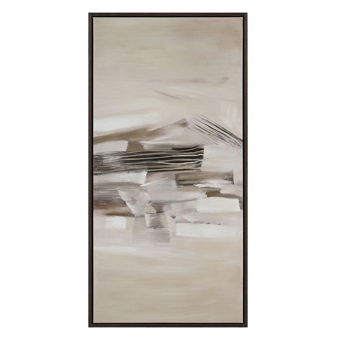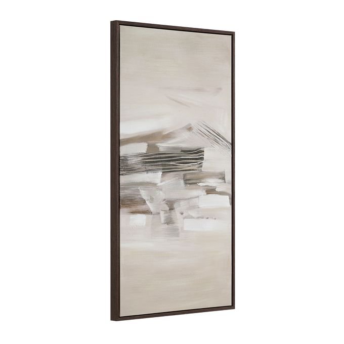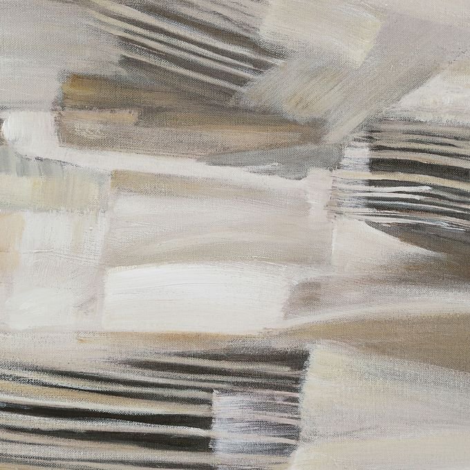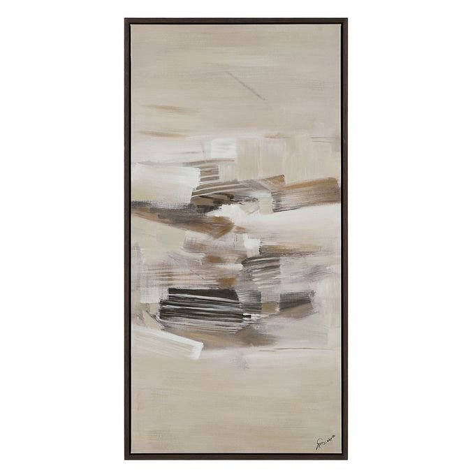 The beauty of triptych art is you can change the story it tells by simply changing up the way you display it. Painted in neutral hues with broad brushstrokes that capture motion and texture this trio of black oak-framed canvases offers style and beauty to elevate any modern interior whether you feature them side by side or stacked.