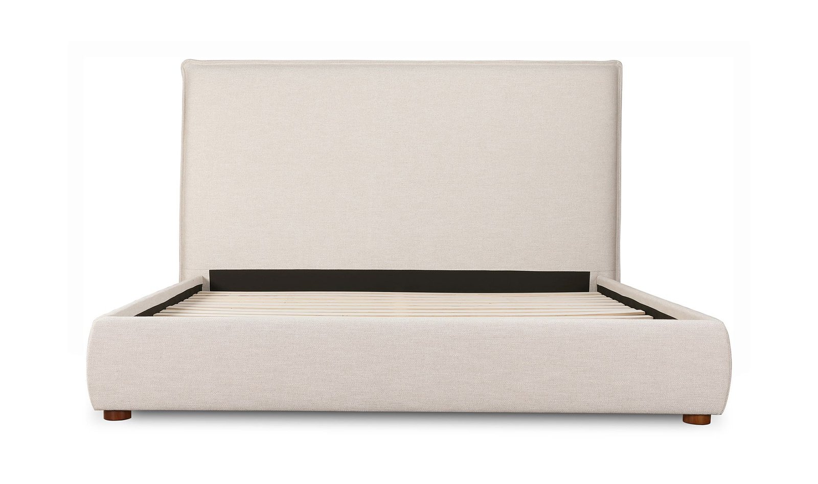 Upholstered from a soft linen blend fabric the Luzon bed is relaxed and welcoming. Its padded tall headboard and solid pine and engineered wood frame make it comfy and reliable while its timeless design and neutral tone showcase a classic practical look.. Dimensions: