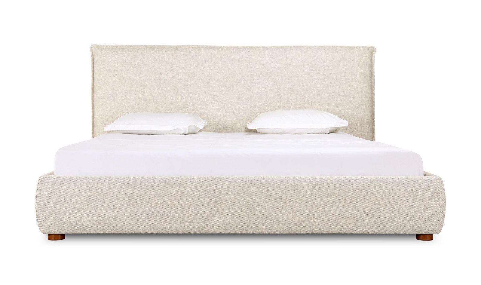 Upholstered from a soft linen blend fabric the Luzon bed is relaxed and welcoming. Its padded headboard and solid pine and engineered wood frame make it comfy and reliable while its timeless design and neutral tone showcase a classic practical look.. Dimensions: 85.5? W X 88.5? D X 45.5? H