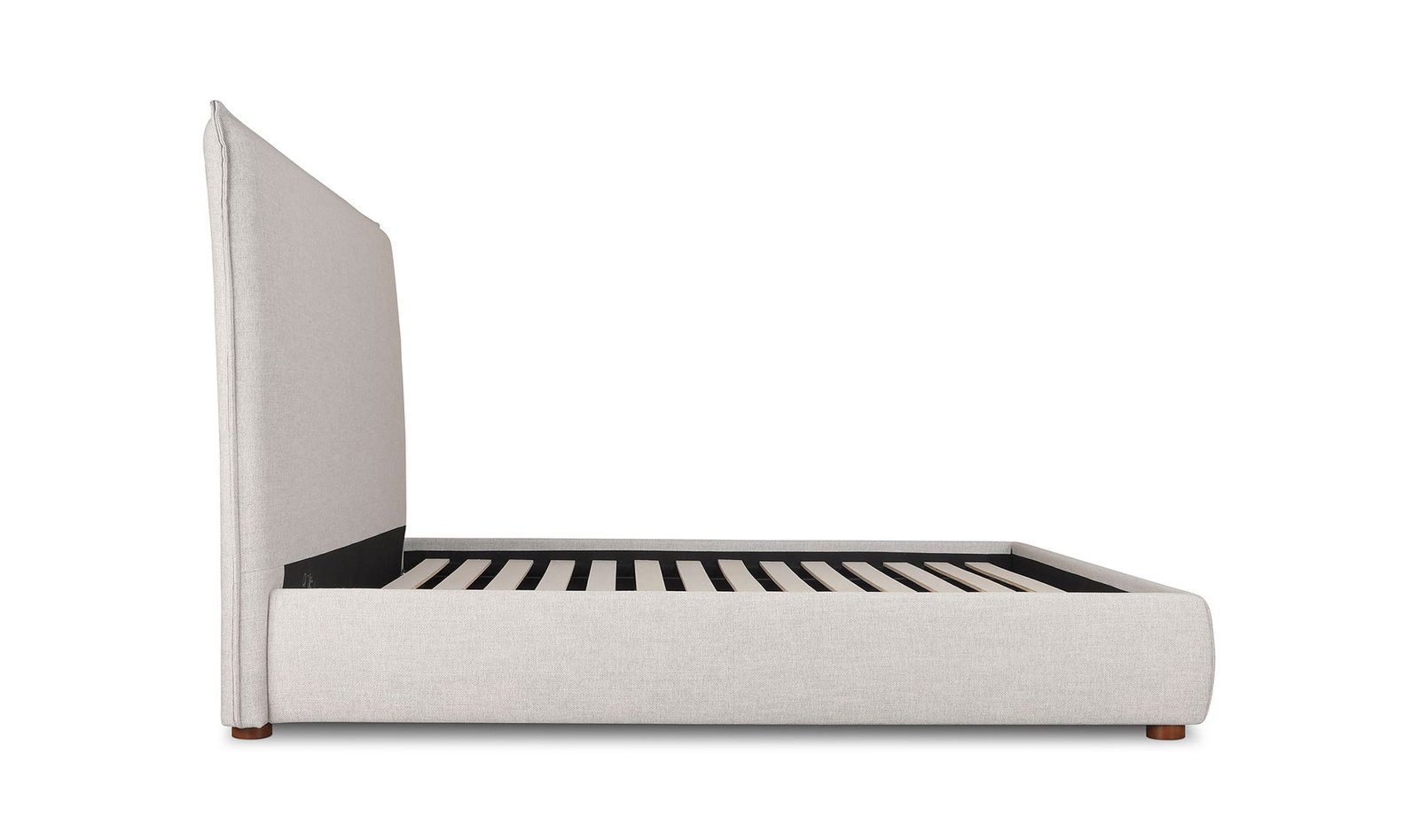 Upholstered from a soft linen blend fabric the Luzon Bed is for those who dream of their next beach destination. Its padded tall headboard and solid pine-poplar mix wood frame make it comfy and reliable while its timeless design and neutral tone showcase a classic utilitarian look.. Dimensions: