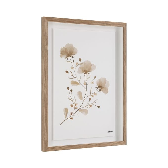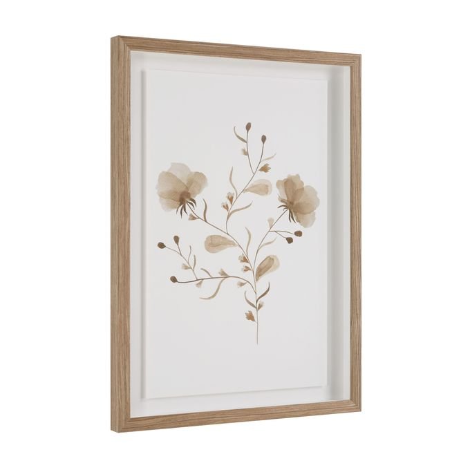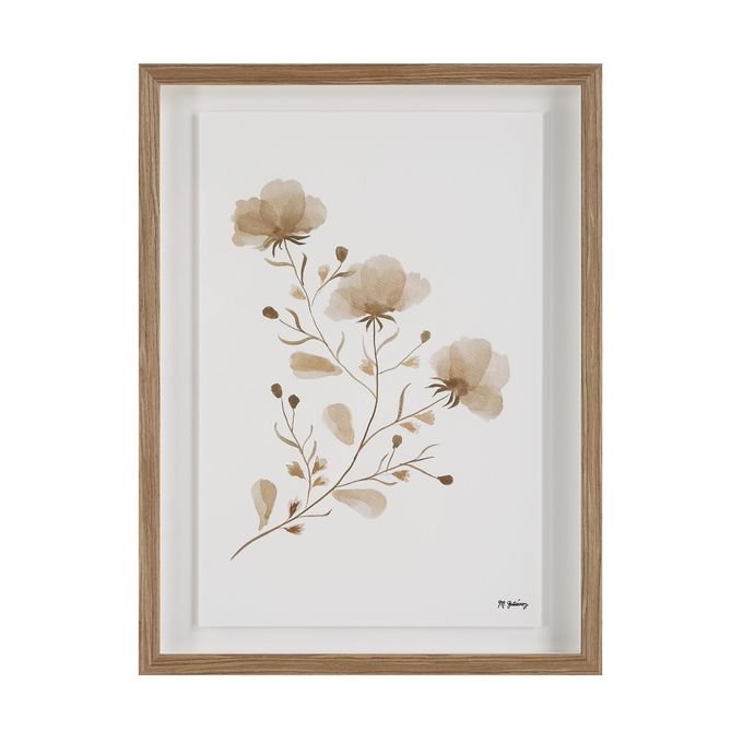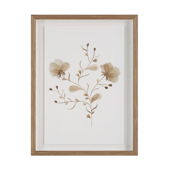 Put ethereal beauty at the top of your project?s must-have list with this pretty pair of floral artwork. Framed in medium walnut and printed in warm shades of brown this duo of delicate blooms brings a natural touch with timeless charm to any interior.