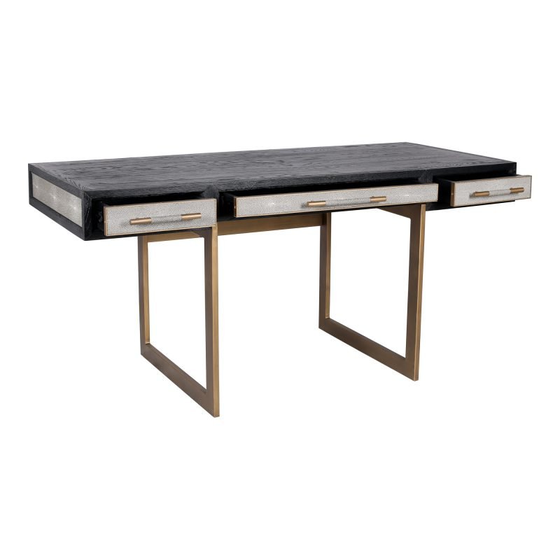 Feeling for the timeless glamor of art deco with a modern twist? Meet the Mako collection. With each item upholstered in the highest quality vegan leather shagreen the Mako collection brings effortless style visual texture and substance to your living space. With a three-drawer design and spacious tabletop this desk offers an elemental chic to any office or living space. An elegant and minimalistic icon the Mako desk will have you counting down the hours till you can get back to work.. Dimensions: 63.0? W X 27.5? D X 30.0? H