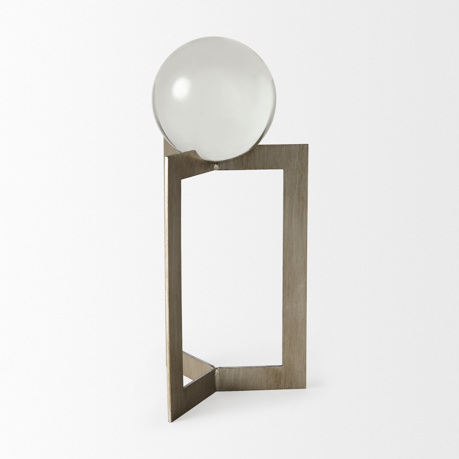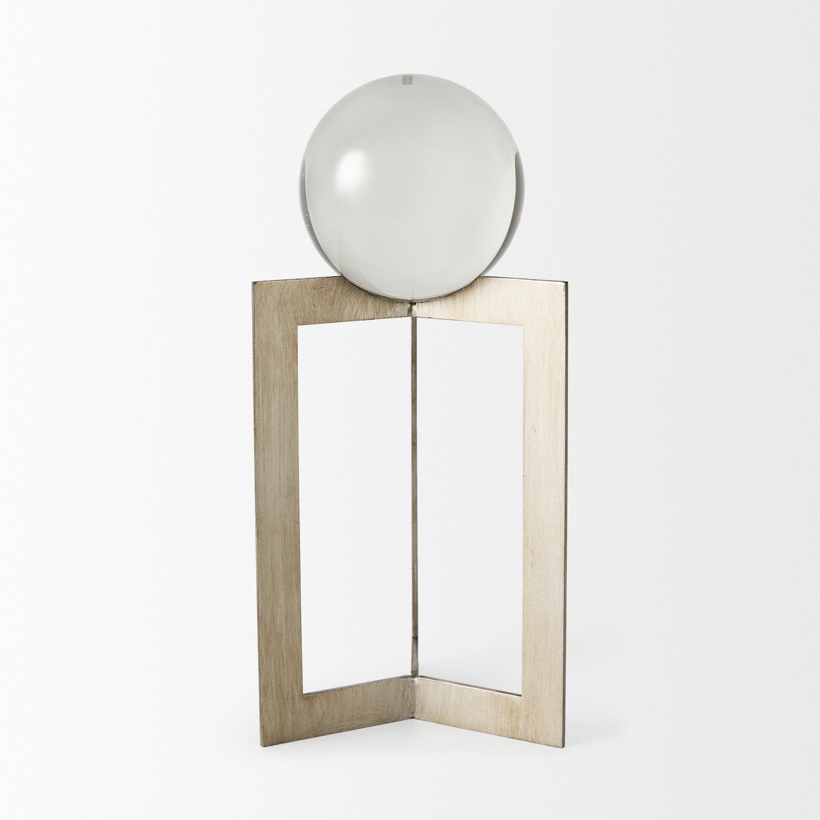 Marie 5.1L x 5.1W x 11.5H Large Antique Gold Metal W/Crystal Ball Decorative Object