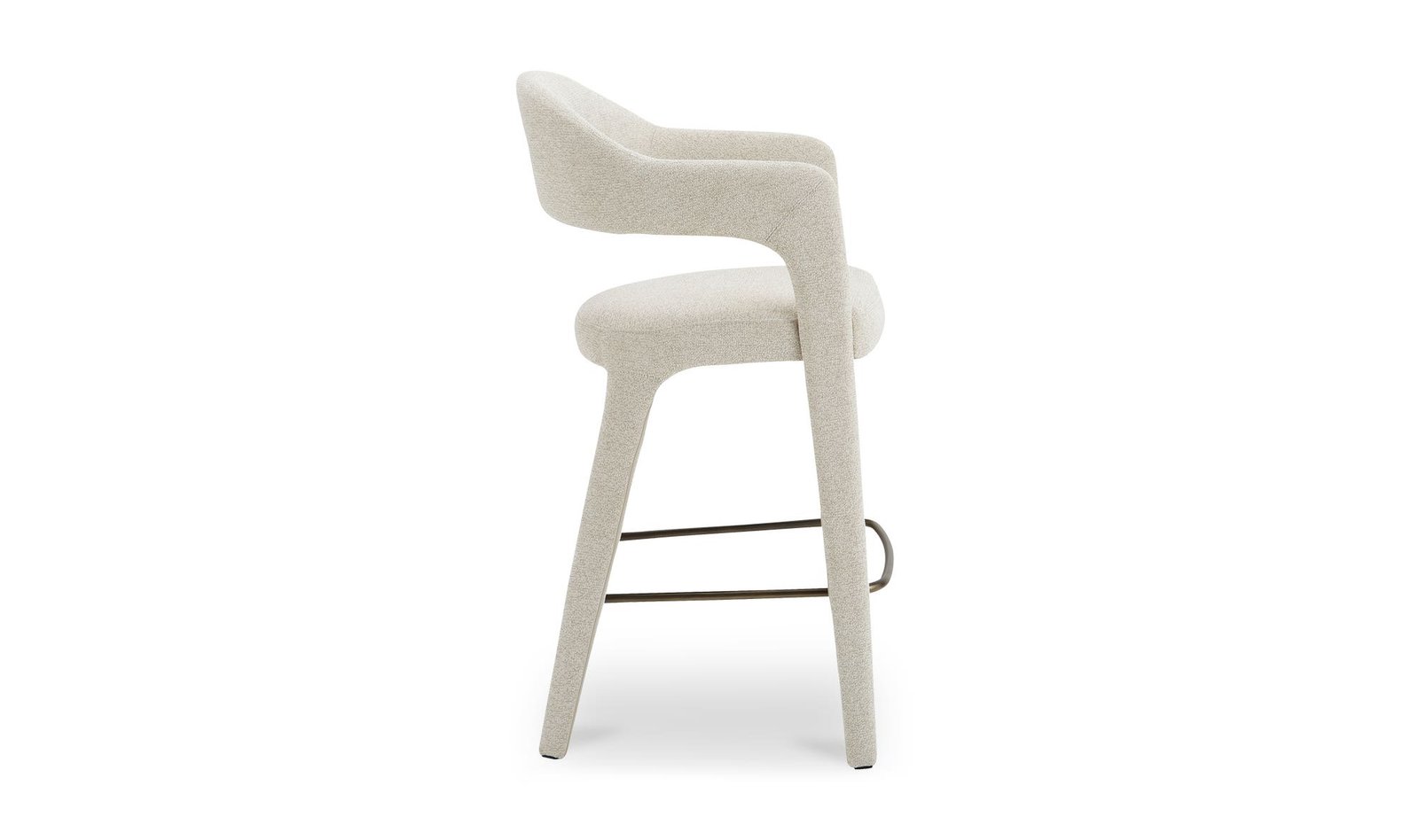 The Martens bar stool features an open barrel back and a continuous curve from leg to frame. Its Performance fabric is complemented by generously padded seating marrying comfort with a clean uncluttered design. Armrests introduce a note of formality while the airy back lends a touch of lightness and sophistication.. Dimensions: 23.6? W X 23.3? D X 42.9? H