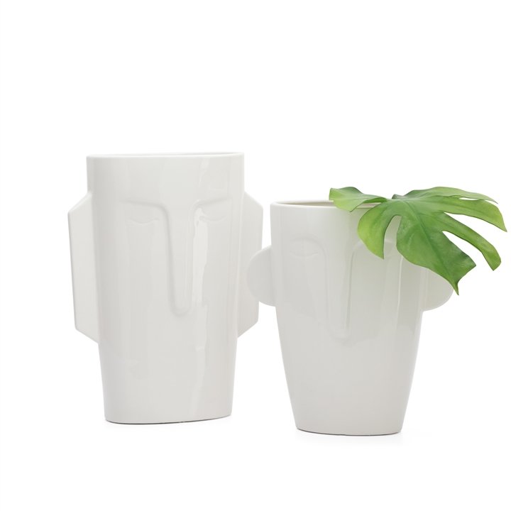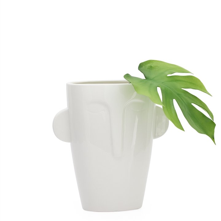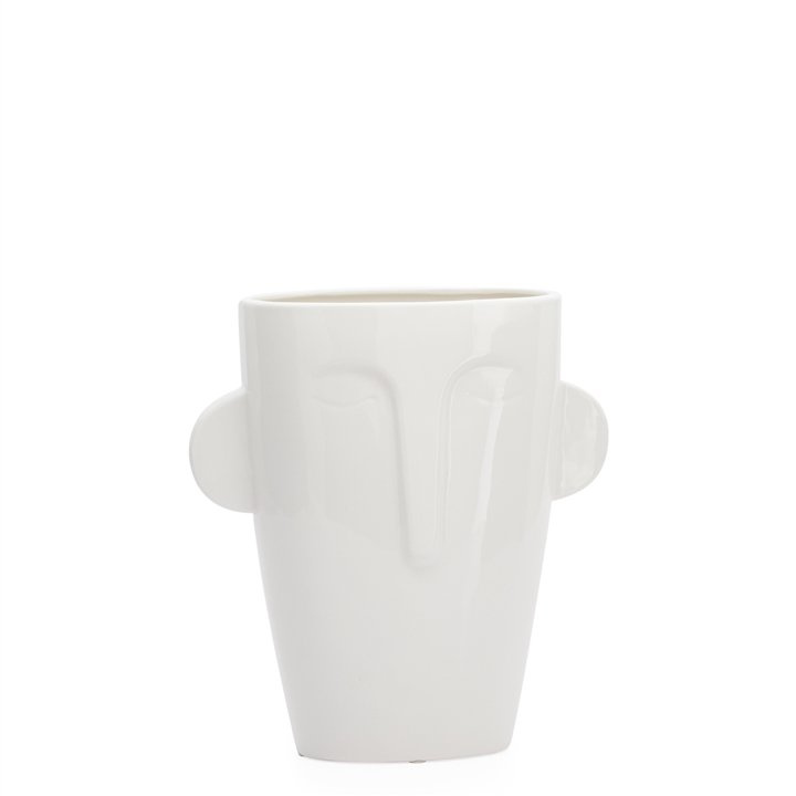 Place this modern ceramic vase on a shelf or table to create a unique display. Fill with fresh or faux florals to make it truly eye-catching. Dimensions: 9 x 3.75 x 9.5h