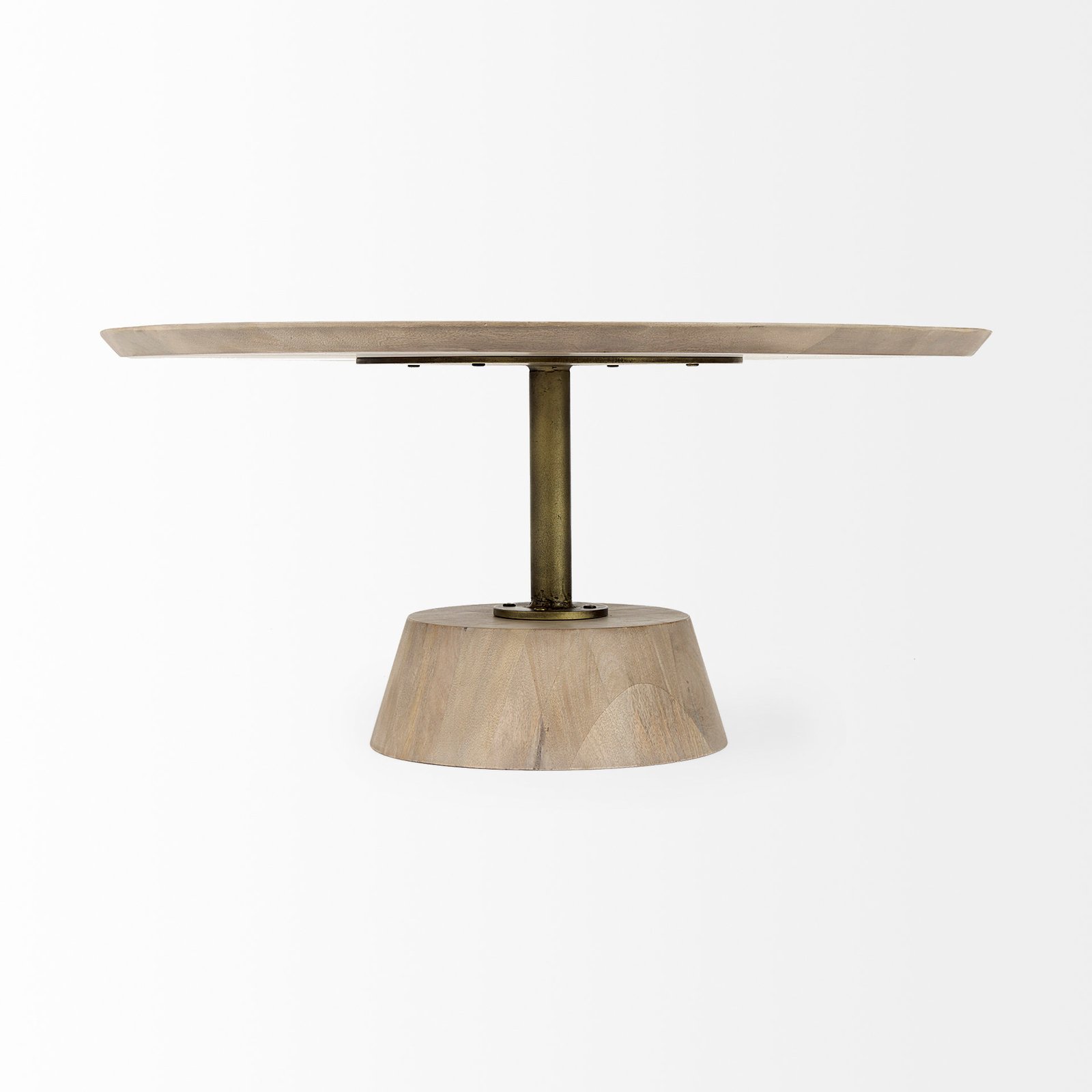 / Maxwell 34L x 34W x 16H Light Brown Wood W/ Gold Metal Pedestal Base Round Coffee Table