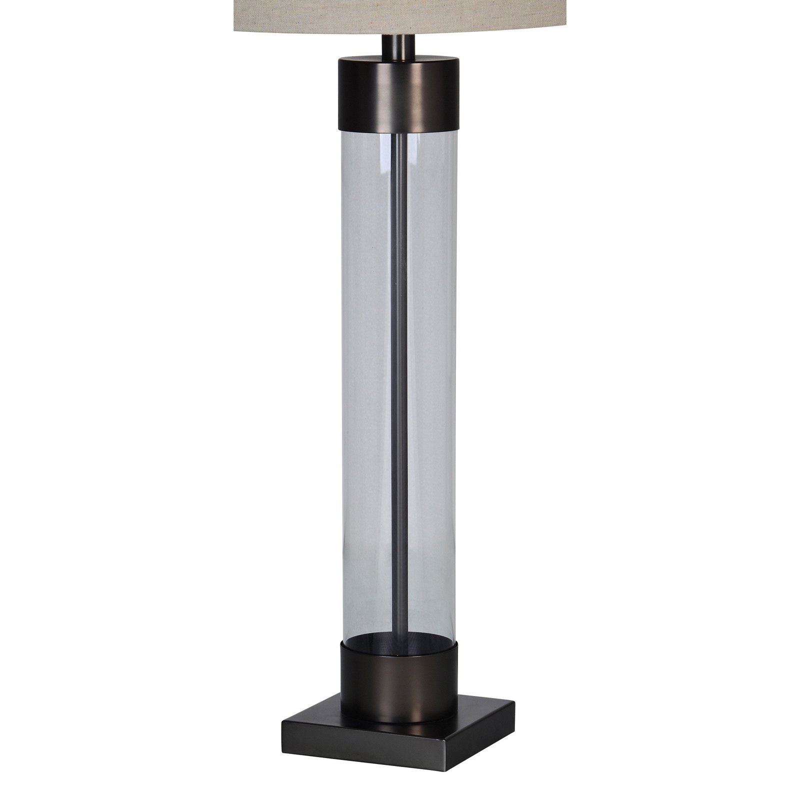Table LampIronBronze Plated FinishGlassClear FinishNatural Linen Shade3-Way SwitchMax. 100WE26 SocketNet Weight: 5.5lbs.Gross Weight: 11.44lbs.. Dimensions: