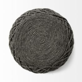 Allium Dark Gray Handwoven Wool Cylindrical Pouf