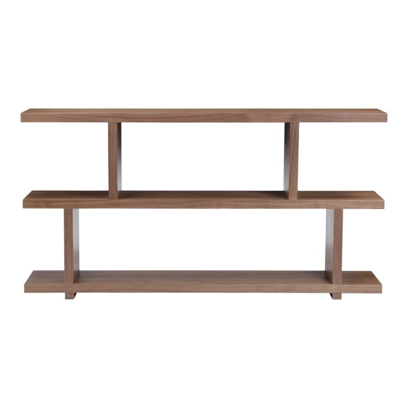 Offering versatility in Mid-Century Modern design the Miri Shelf is an exquisite shelf that doubles as a perfect space divider for open-concept spaces. Made of walnut veneer over MDF it radiates an inviting warmth and elegant ingenuity for those needing a larger storage solution with two units able to slide together for a seamless five-tiered display.. Dimensions: 63.0? W X 11.0? D X 33.0? H