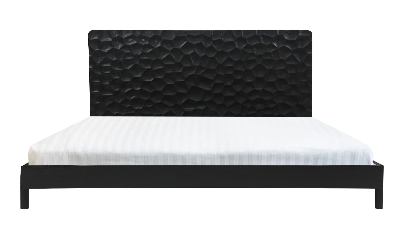 A three-dimensional love letter to the splendor of the vast cliffscape of the island of Okinawa in Japan organic shapes reminiscent of hand-chiseled detailing adorn the headboard of the Misaki bed. Each groove is carefully carved out to lovingly represent the history and soul of this otherworldly place adding depth and warmth to this dreamy piece.. Dimensions:
