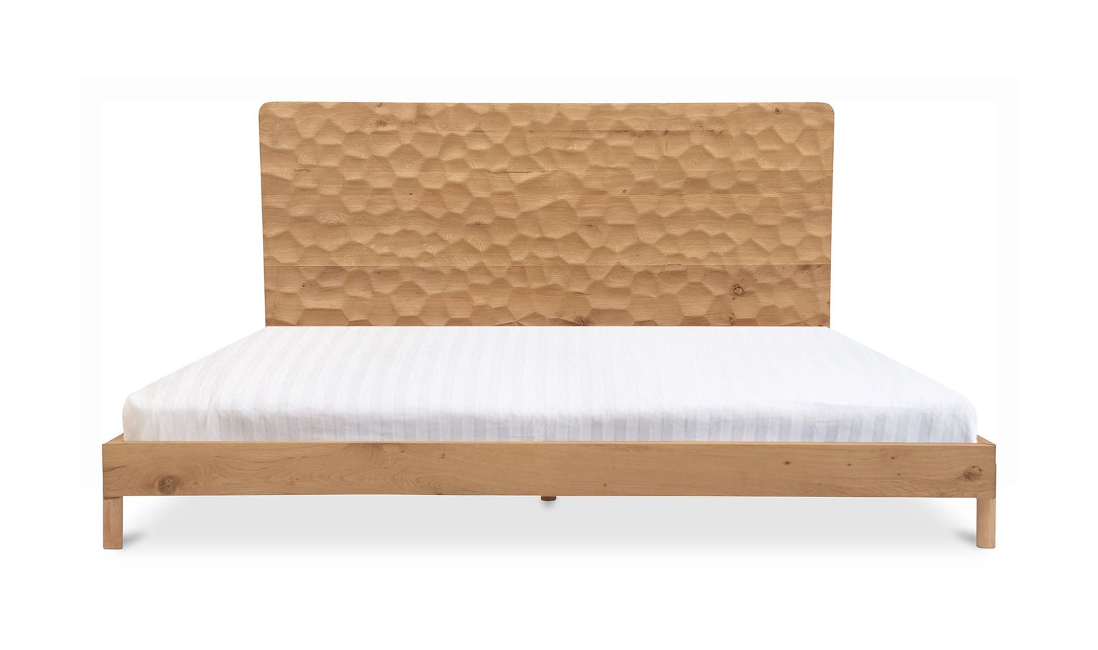 A three-dimensional love letter to the splendor of the vast cliffscape of the island of Okinawa in Japan organic shapes reminiscent of hand-chiseled detailing adorn the headboard of the Misaki bed. Each groove is carefully carved out to lovingly represent the history and soul of this otherworldly place adding depth and warmth to this dreamy piece.. Dimensions: 79.0? W X 85.0? D X 45.0? H