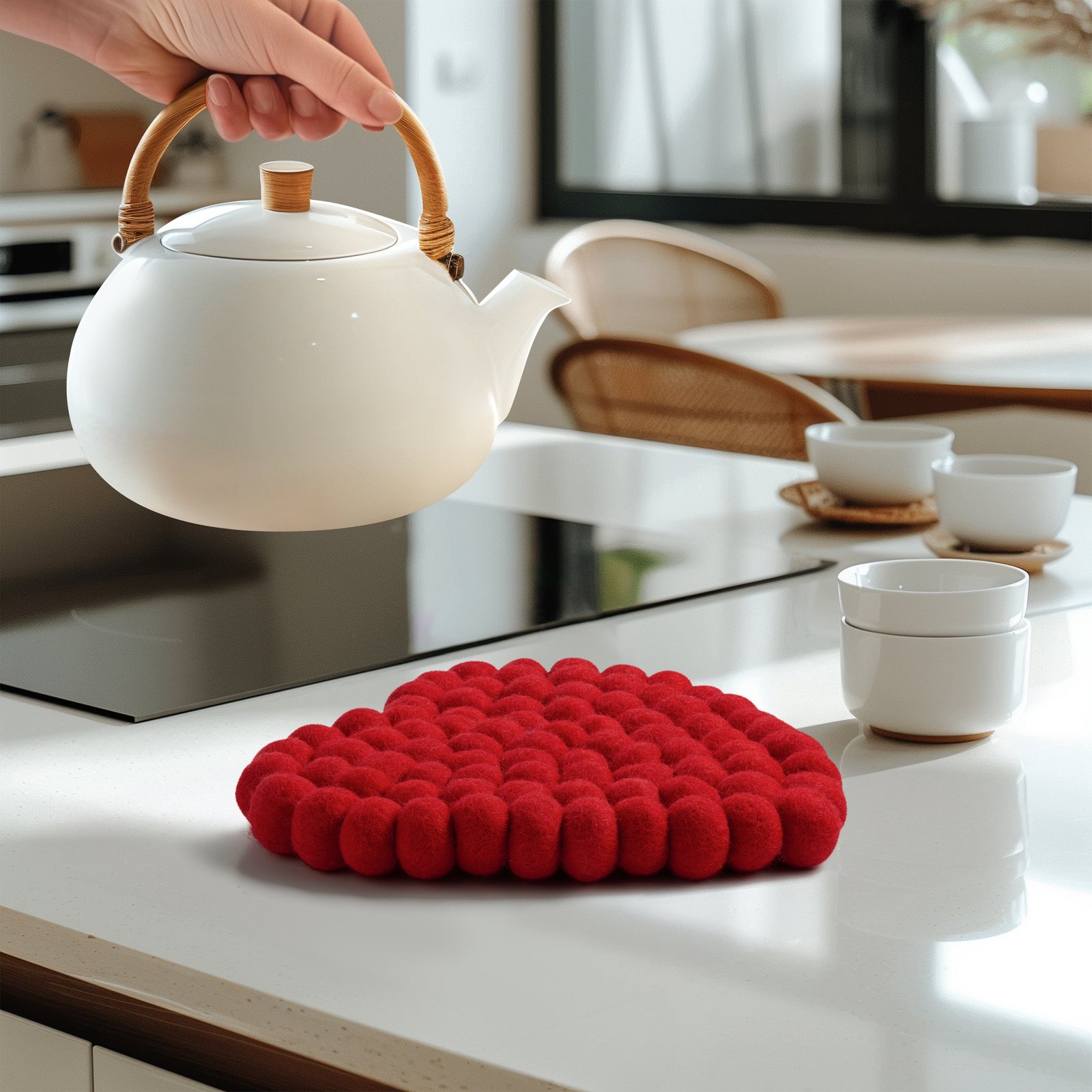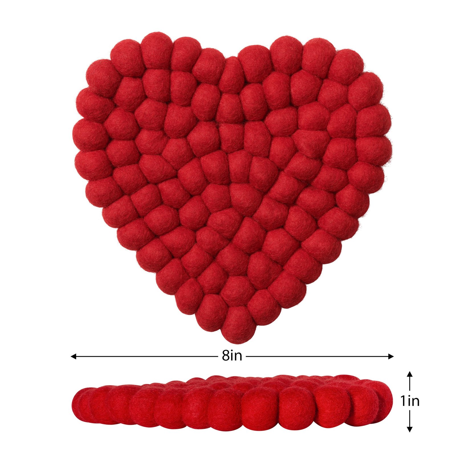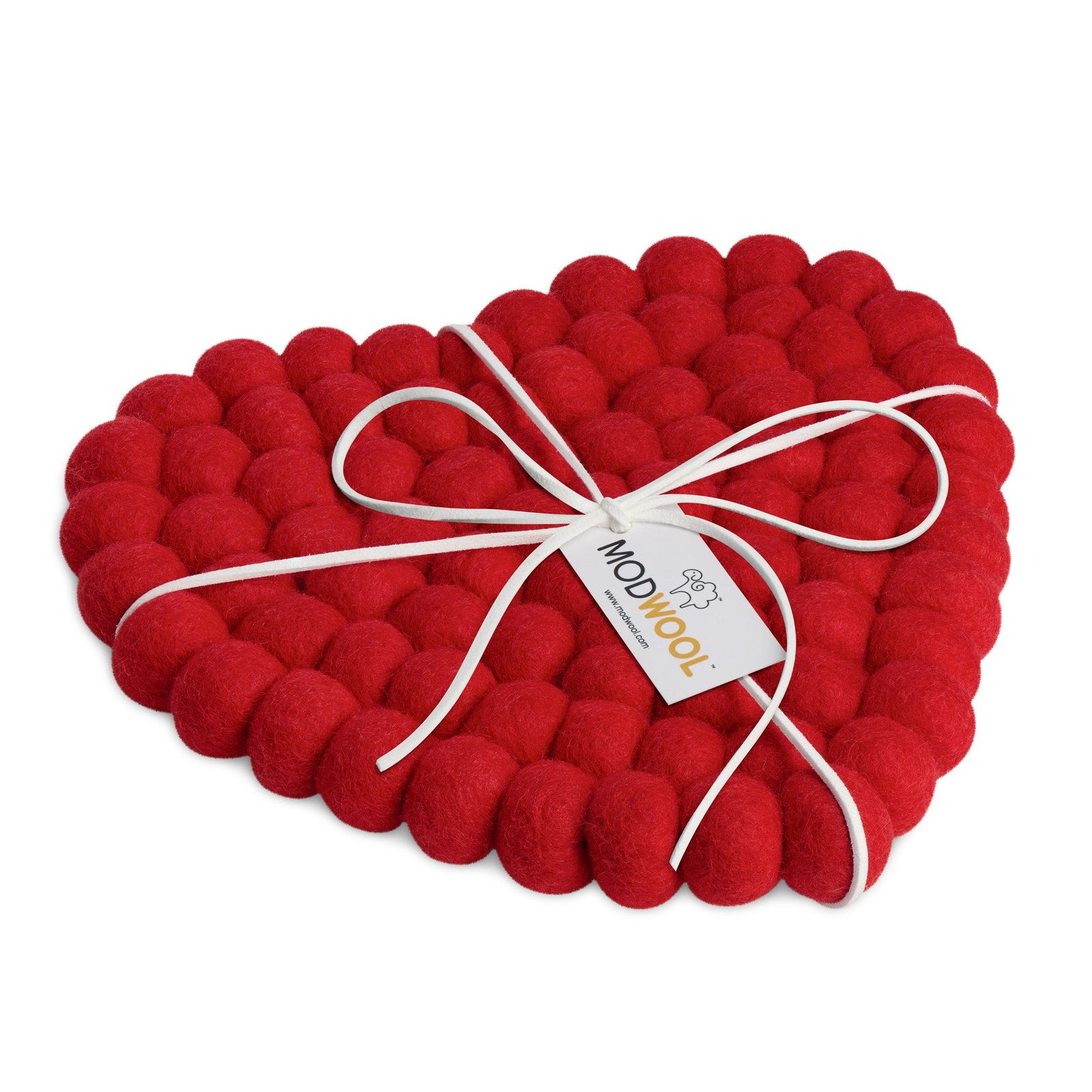 MODWOOL Felt Ball 8 Inch Heart Trivet – Solid Red