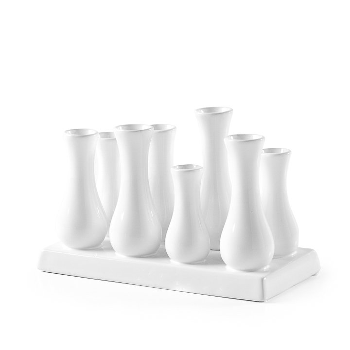 Multi Tube Rectangle White Ceramic Urn Vase