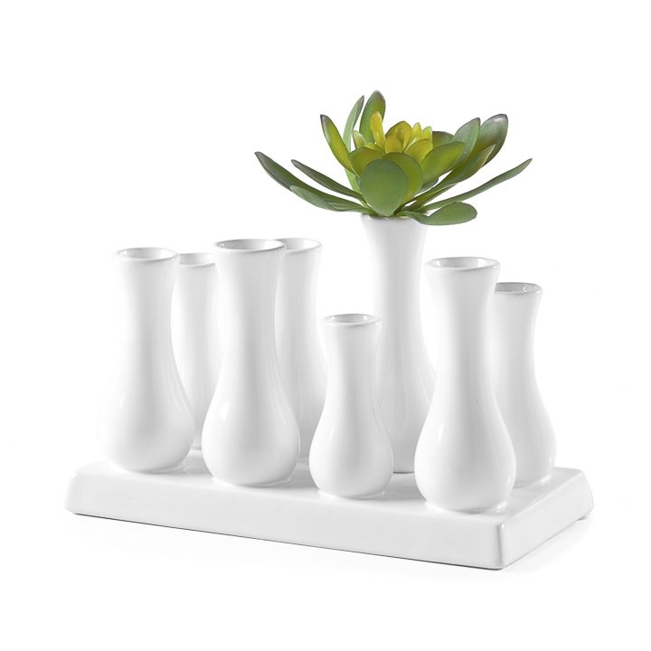 These petite multi urn ceramic vases make arranging flowers a breeze. Simply insert a stem or two for an instant arrangement. Dimensions: 3.5 x 7 x 4.5h