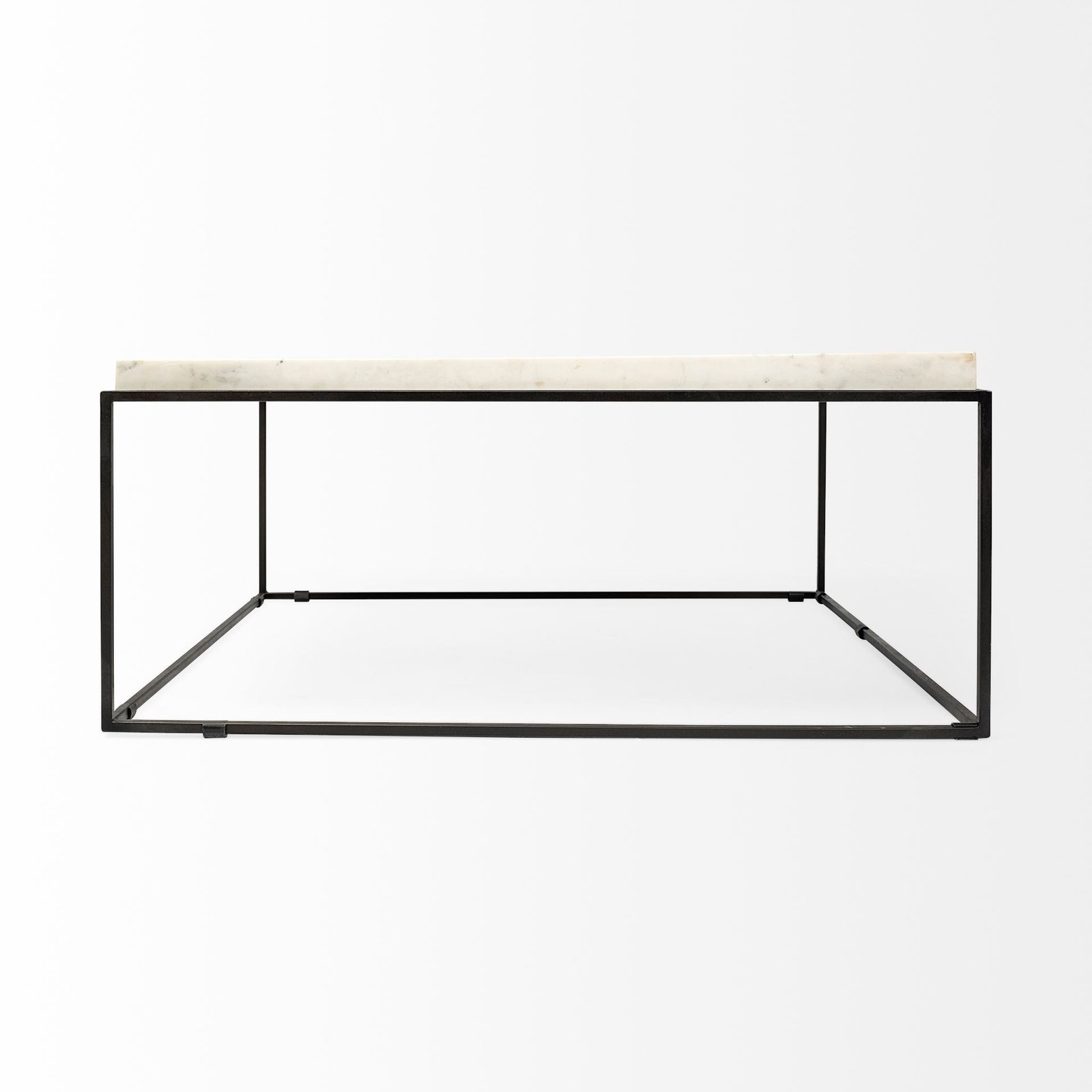 Nathan 36″x36″ Square White Marble Top Black Metal Base Coffee Table