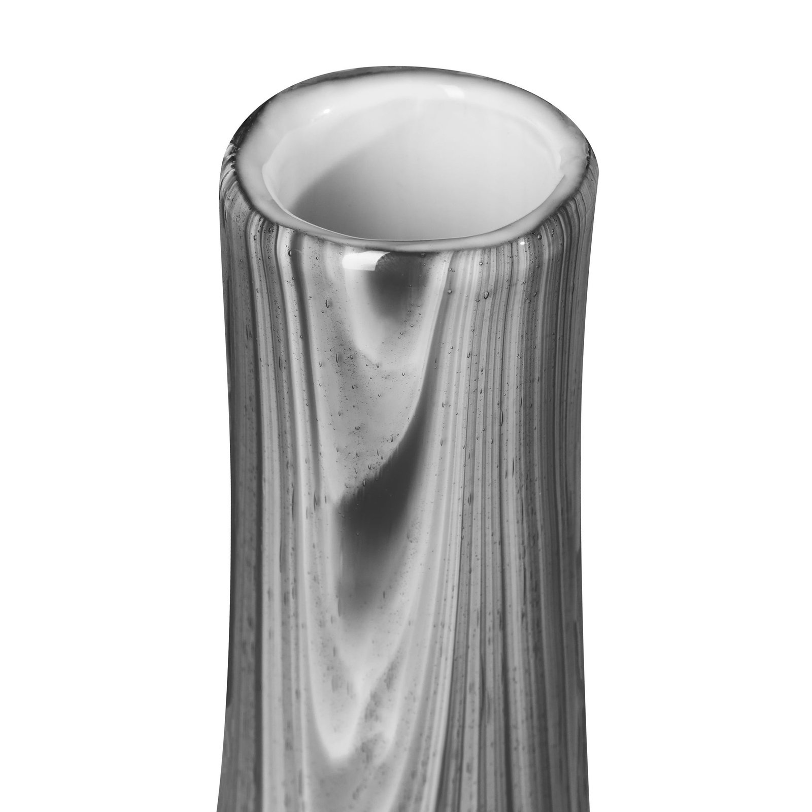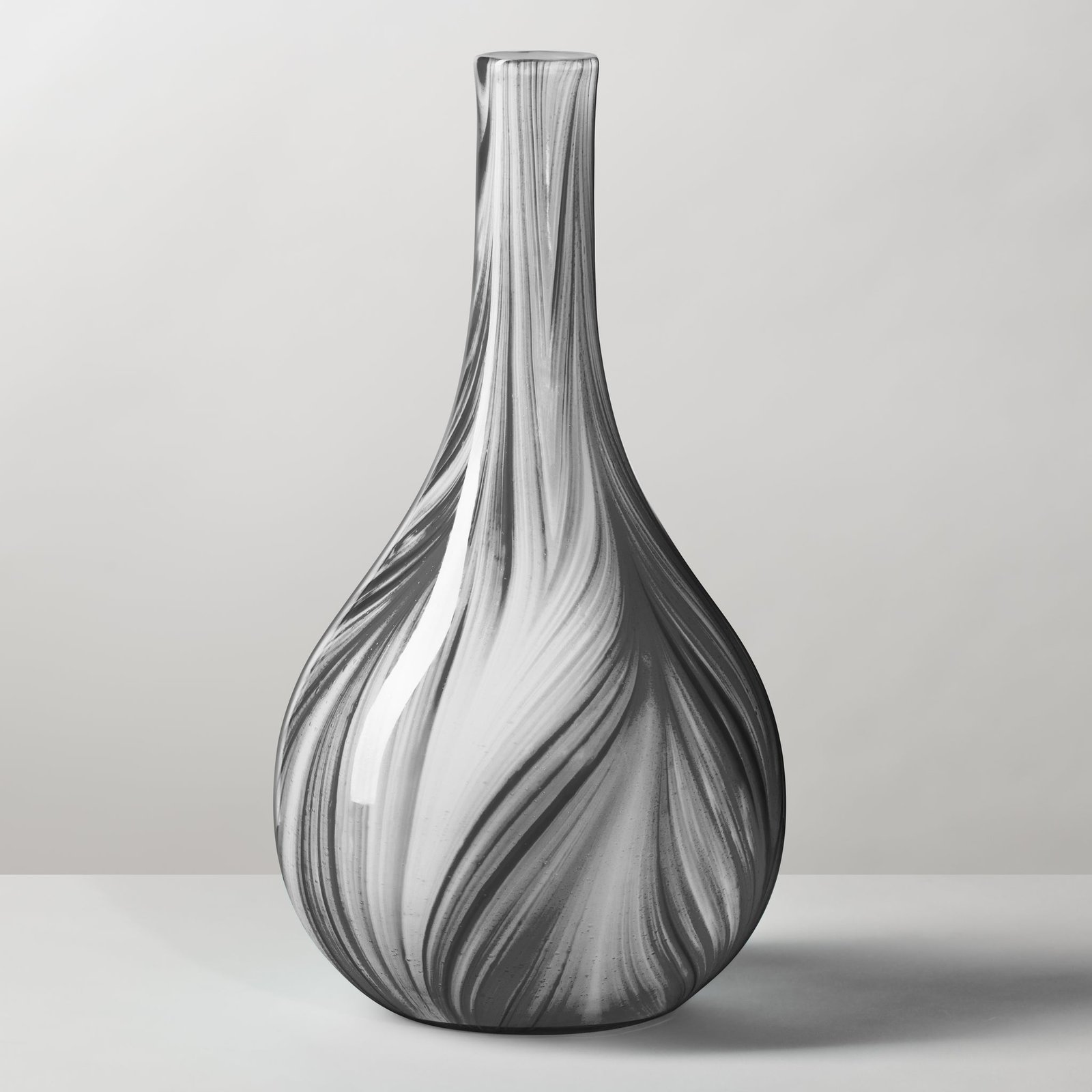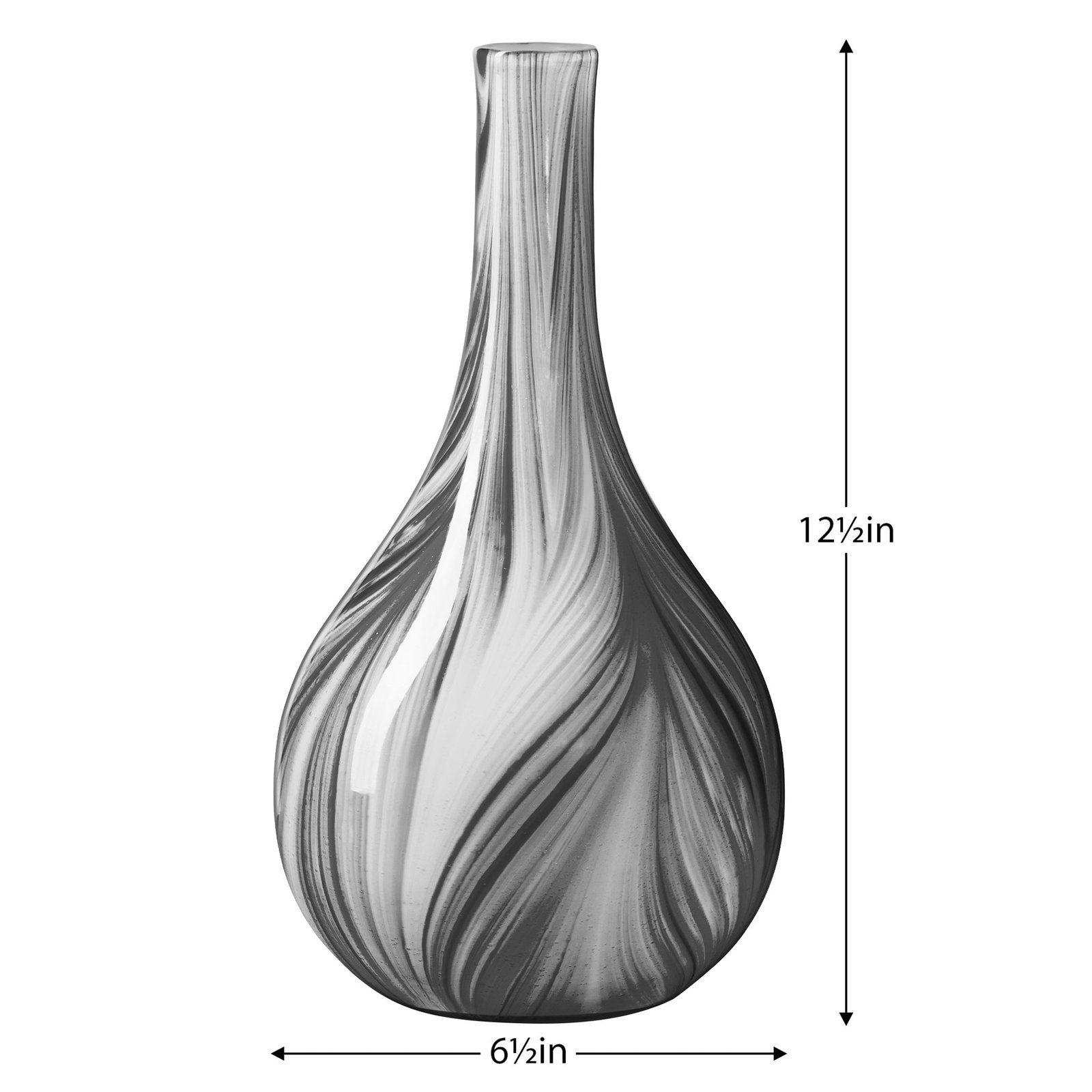 Odessa Feathered Black & White Glass 12.5 Inch Tall Long Neck Bottle Vase