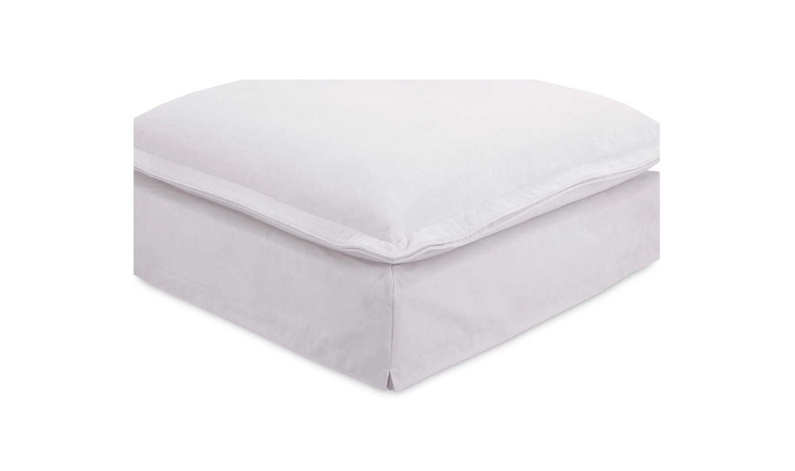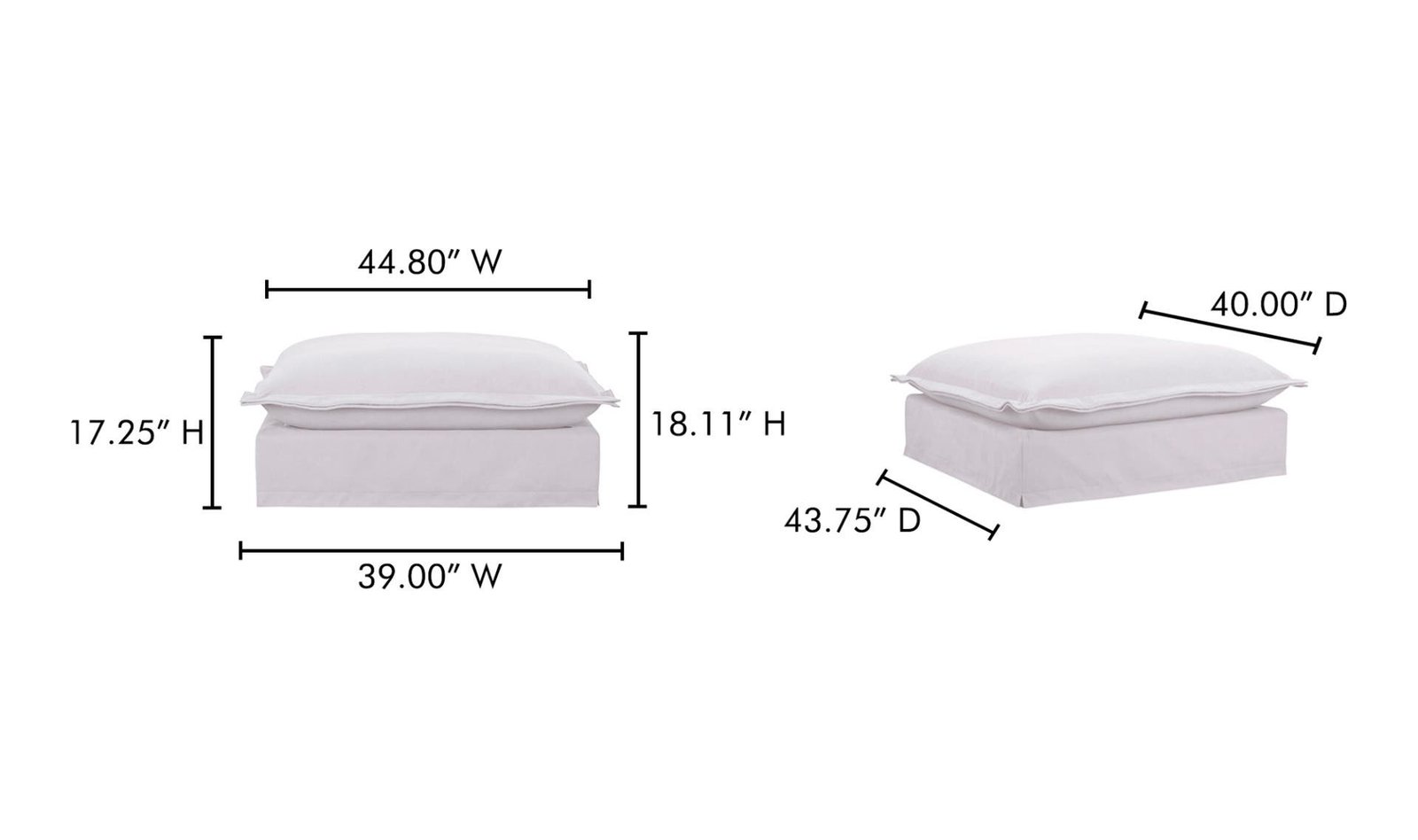 With its elegant slipcover easy-to-clean LiveSmart performance fabric upholstery the Olivia ottoman nods to traditional design while embracing the demands of everyday living. Crafted for unrivaled comfort it features plush seats made from a luxurious feather and fiber blend complemented by flange edge seams for a soft pillow-like feel.. Dimensions: 39.0? W X 43.75? D X 17.25? H