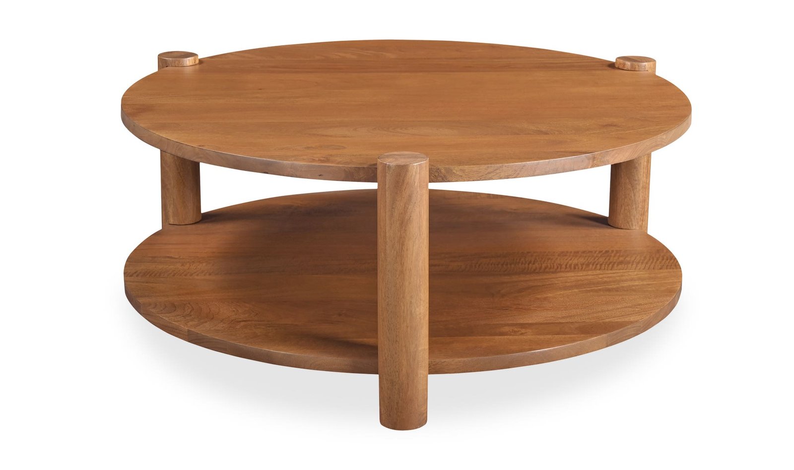 The Olsen coffee table brings a vintage appeal and timeless charm as its solid mango wood construction and warm brown finish add a rustic elegance. The cylindrical legs and meticulous joinery details are artfully incorporated alongside open storage. This piece effortlessly brings a sense of airiness and refreshing lightness to any space.. Dimensions: