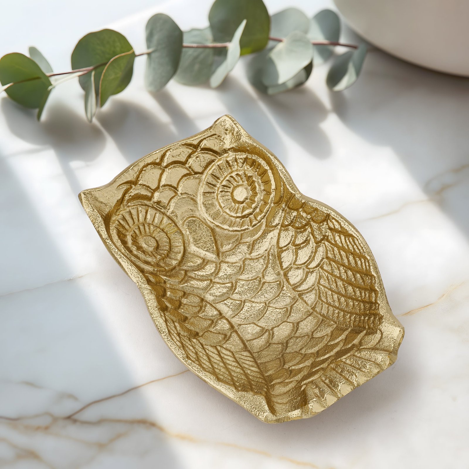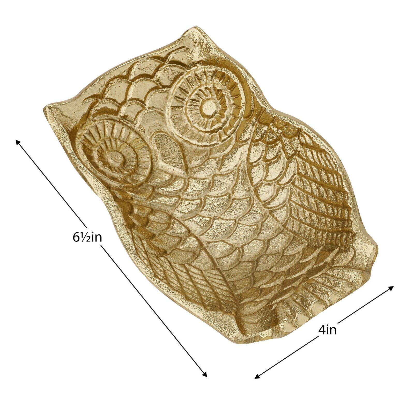Owl Gold Nickel Plated Aluminum 6.5 Inch Length Decor Dish