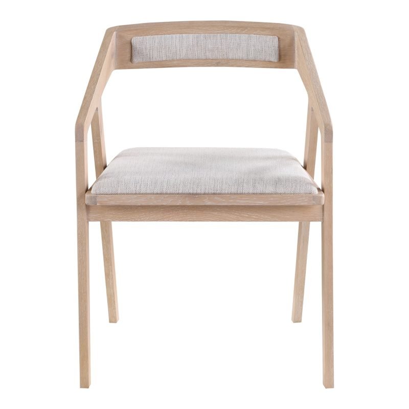 Streamlined with all the mid-century modern vibes you can settle right into the Padma armchair brings ultimate comfort with its supportive backrest wider seating and sloped arm design. Clean lines meet sleek minimalist form with its white oak frame flared back leg and tonal fabric?an ideal addition to elevate your dining space.. Dimensions: 22.0? W X 21.0? D X 30.0? H
