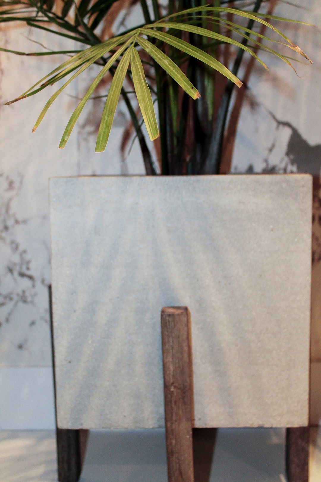 Ficonstone Pot. Acacia Base. Beautiful acacia wood base . Pot is made of Ficonstone for durability and longevity. . Perfect for indoor and outdoor use. . Dimensions: 14.4 x 14.4 x 17.5 ; 19lbs