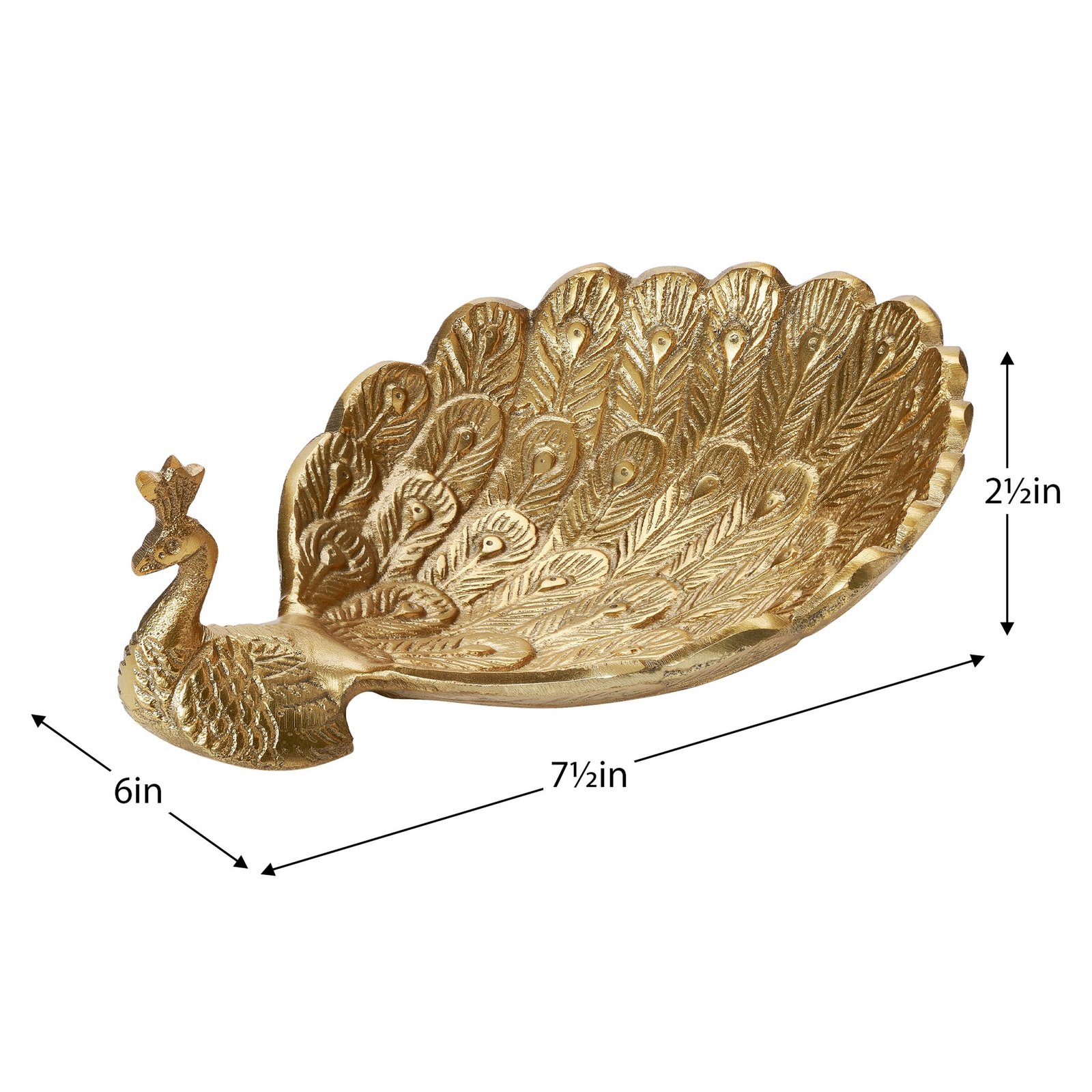 Peacock 7.5 x 6 Inch Aluminum Decor Dish – Gold