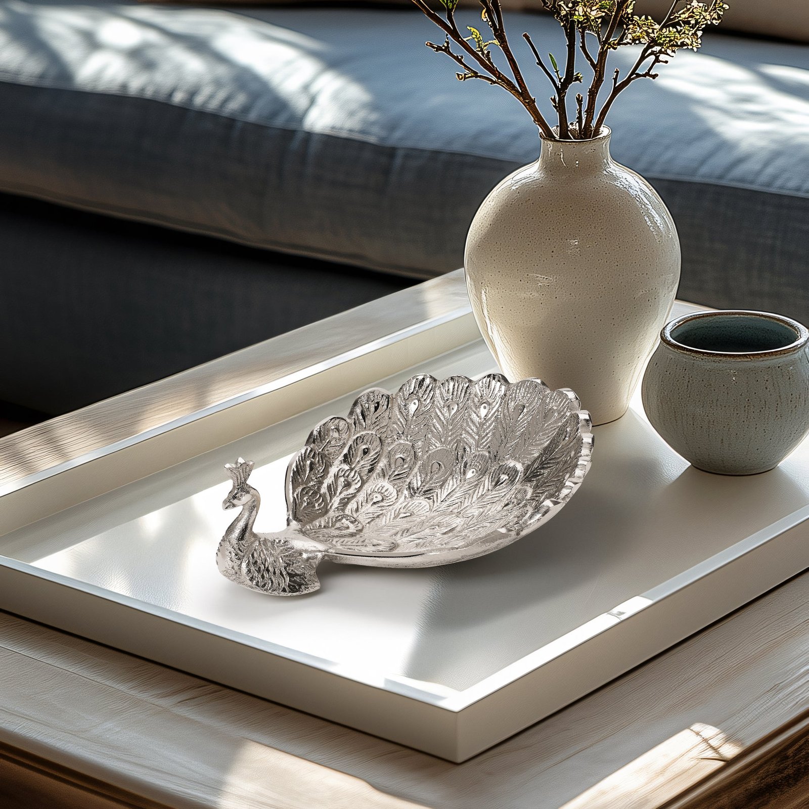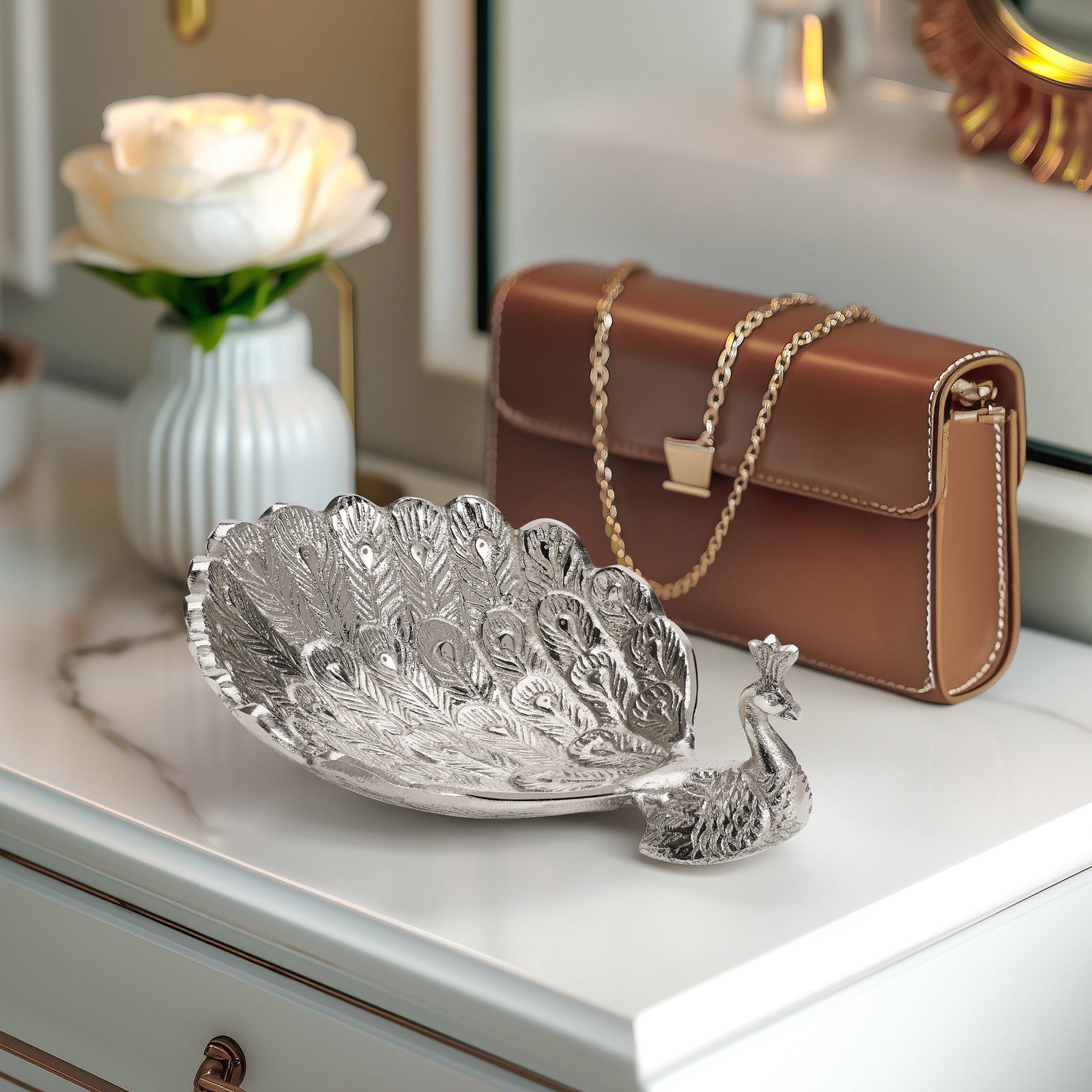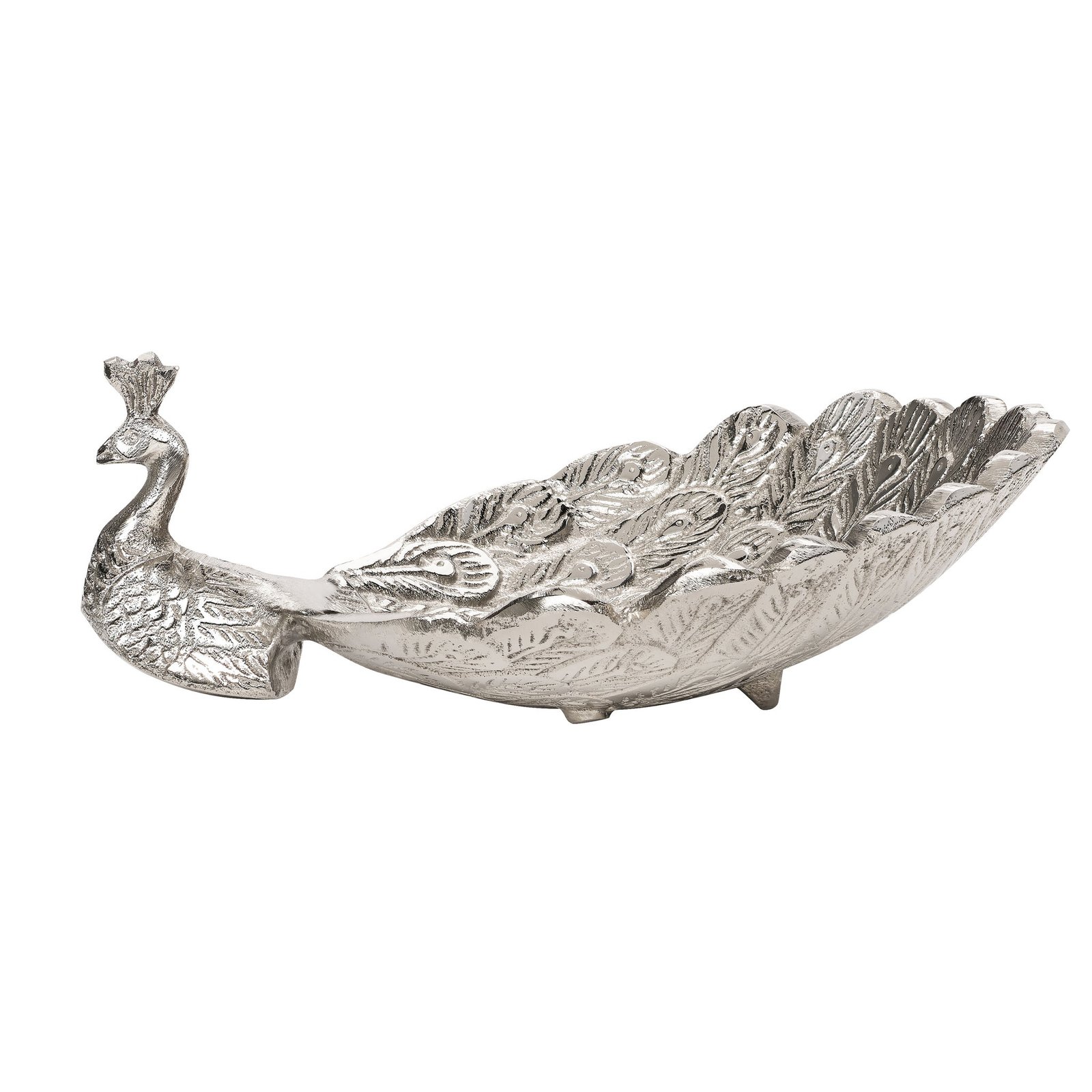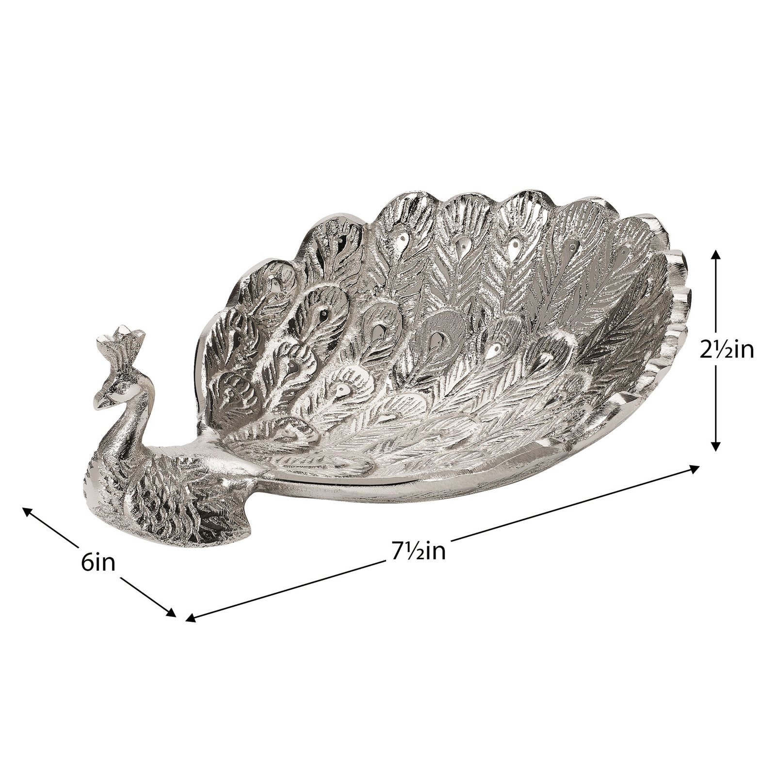 Peacock 7.5 x 6 Inch Aluminum Decor Dish – Silver