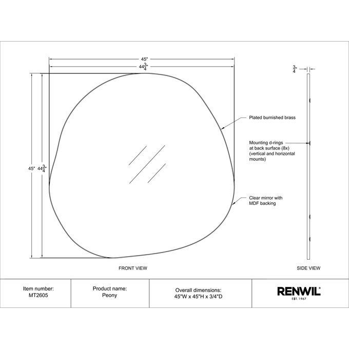 The Peony 45″ Tall Irregular Round Mirror is the perfect addition to any modern or contemporary space. Its unique and abstract-shaped design adds intrigue and flair to any room while its high-quality and durable stainless steel frame ensures long-lasting use. Equipped with a D-Ring hanging system this mirror is easy to install and can be hung in any way you desire. Its four-way hanging capability provides versatile display options making it an excellent choice for those seeking both style and functionality in their decor. Elevate your space with the Peony 45″ Tall Irregular Round Mirror today.