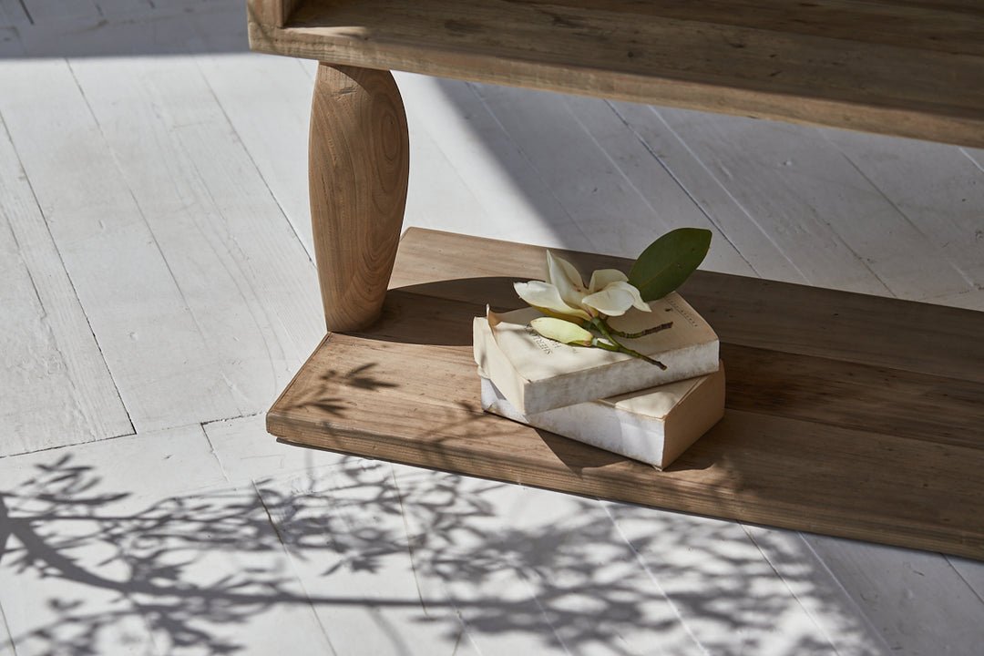 Natural elm wood grains show beautifully throughout the front of this piece . Can be used as a stand alone piece. or as a modular unit. . Open concept shelving to allow your personal style shine through. . Dimensions: 30 x 14 x 71 ; 62lbs