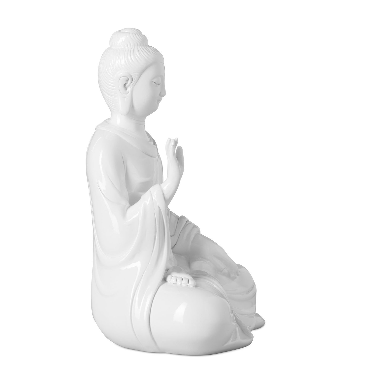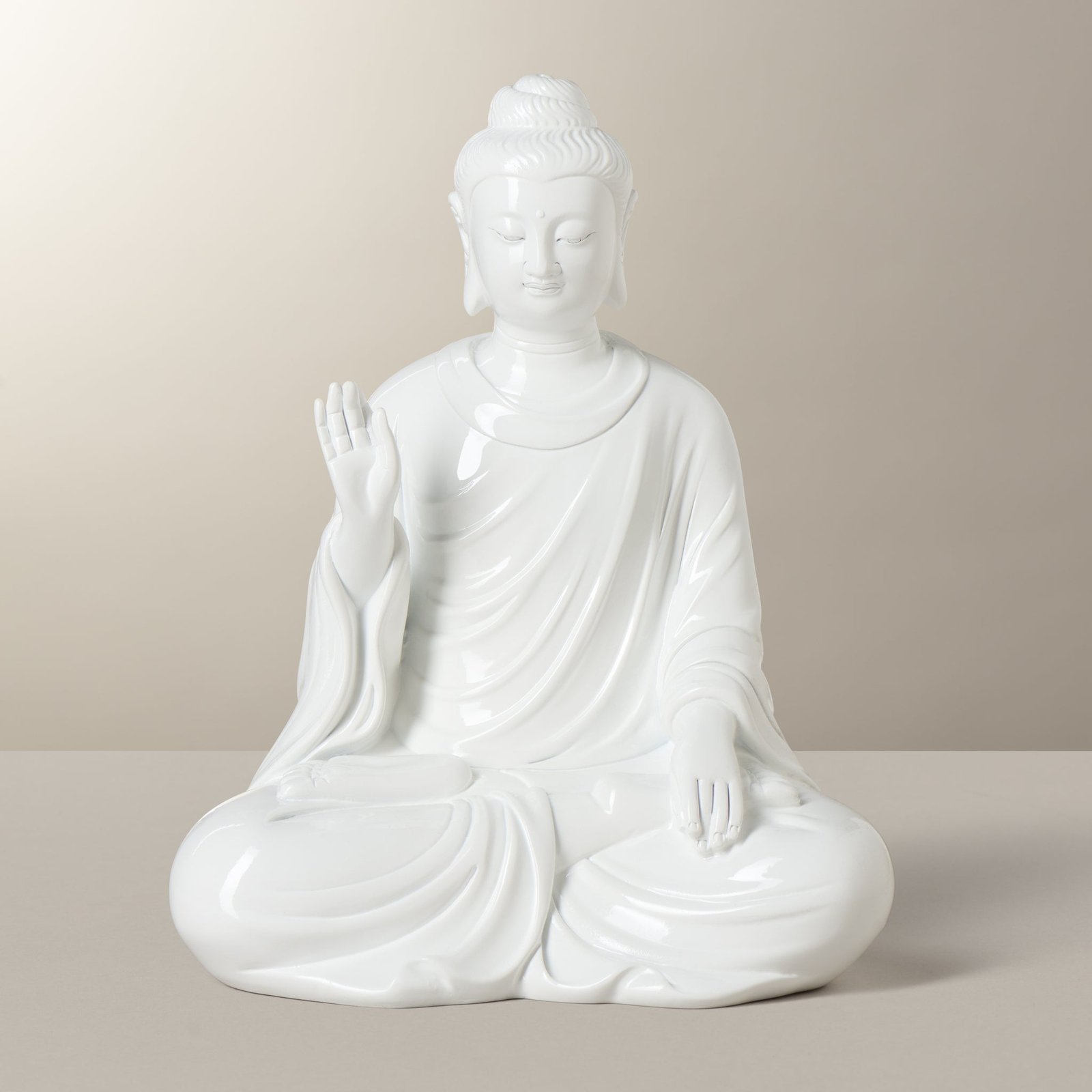 Elevate the serenity of your living space with our small white Buddha sculpture delicately crafted from resilient resin. With exquisite attention to detail this sculpture captures the essence of tranquility as the Buddha assumes a protective stance radiating a sense of calm and positive energy. The pure white finish adds a touch of minimalist sophistication making it a mindful and aesthetic addition to your home decor. Dimensions: 7.25 x 5 x 9h