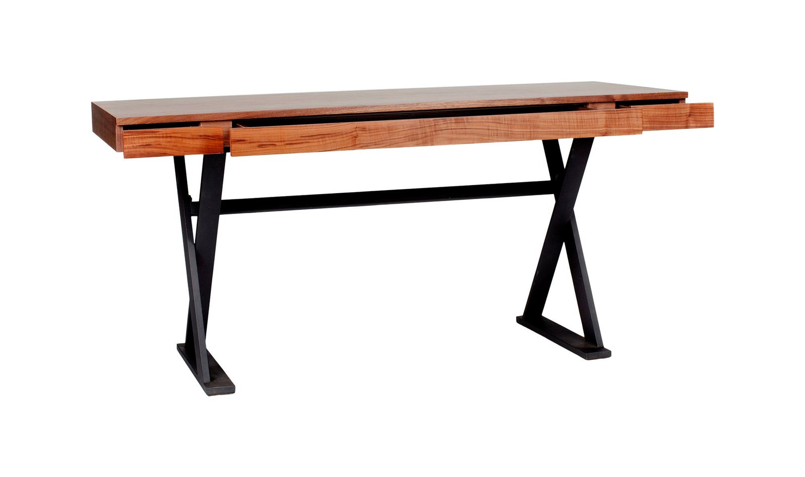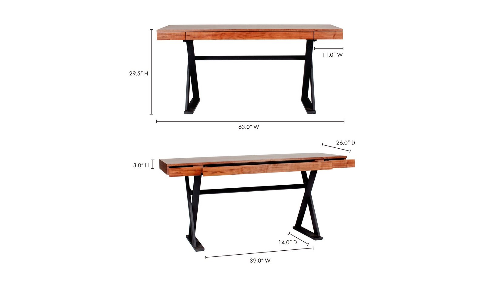Entrenched in industrial design the Reale Desk’s high-quality walnut veneer tabletop and iron frame illustrate the minimalist lifestyle movement. Set with straight lines and three drawers for paper storage this modern office desk ensures that your home office stays organized.. Dimensions: 63.0? W X 26.0? D X 29.5? H