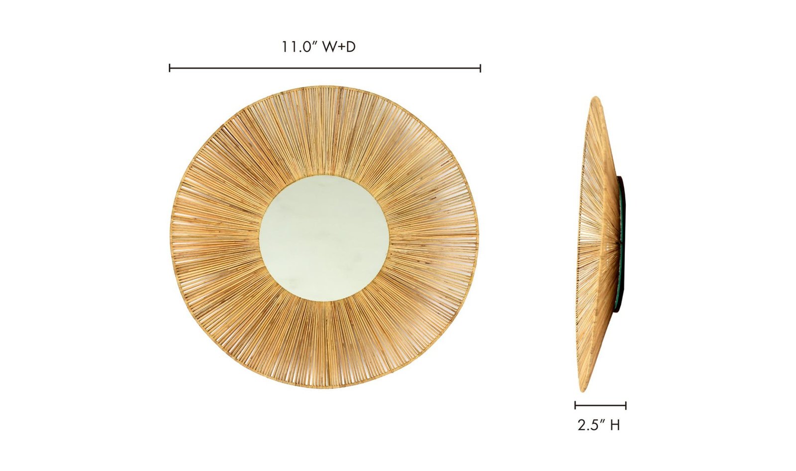 A sunburst of originality the Remi mirror?s natural iron and cane frame is a beautiful organic accent for your home. Eye-catching and glam this sizeable wall mirror provides additional depth alongside luxurious design. Made with artisanal craft this mirror is just as much a work of art as it is a source of positive reflection.. Dimensions: