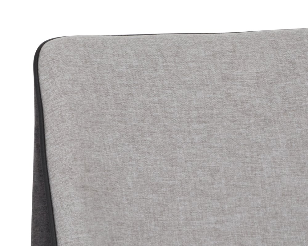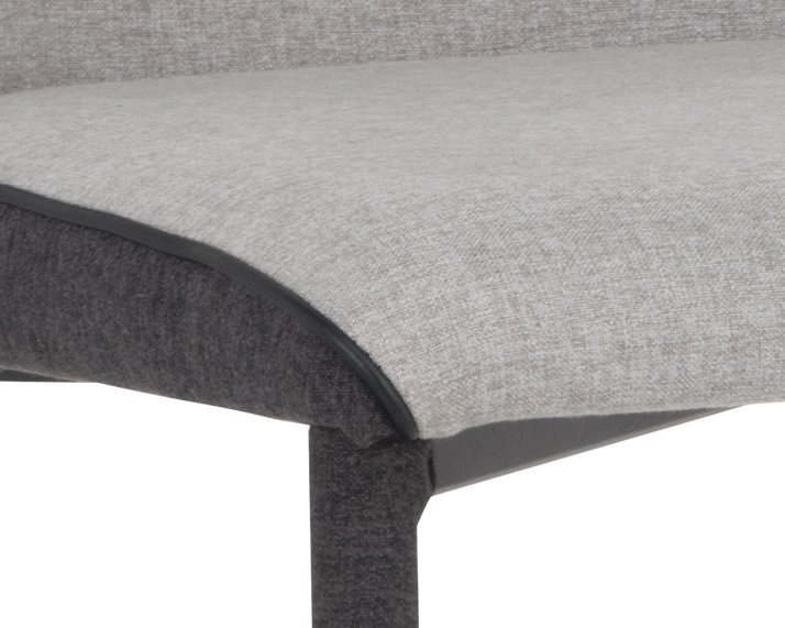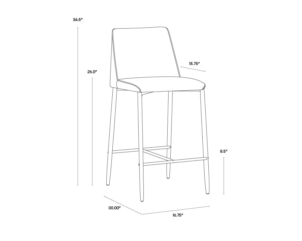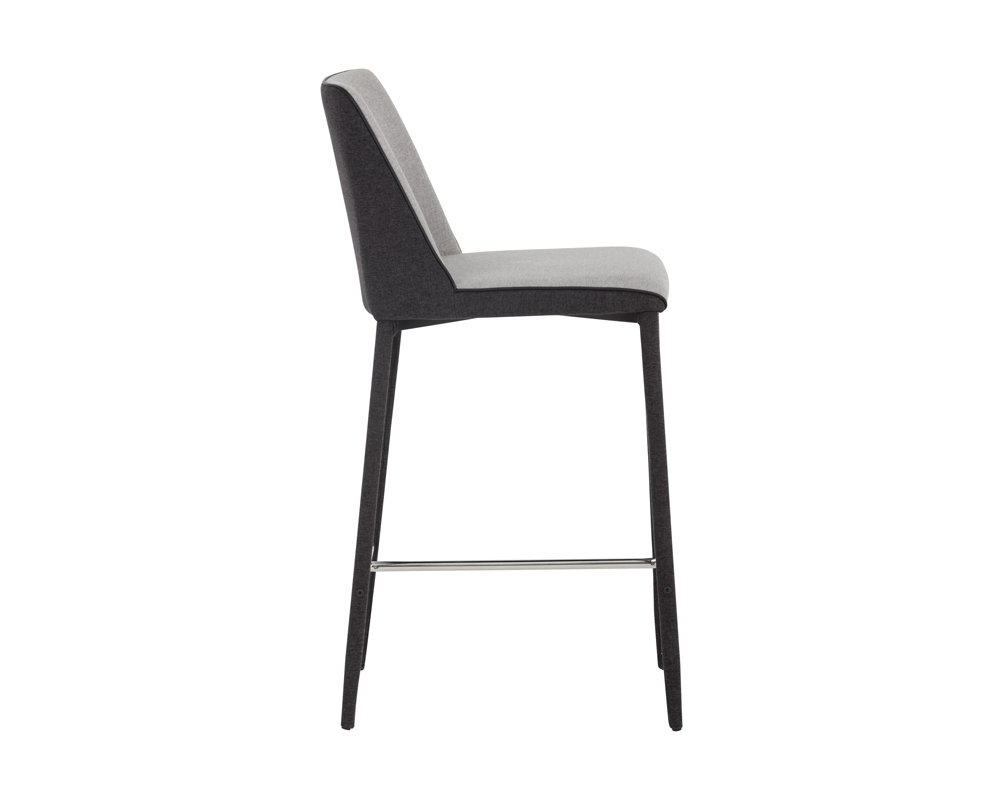 This modern counter stool offers a minimalist silhouette perfect for small urban settings. Features a comfortable seat in armour grey fabric with a contrasting seat back and steel legs upholstered legs in dark slate fabric. Suitable for various dining kitchen and bar spaces of all sizes. Steel legs feature a durable powder-coated finish. Seat and back cushions are filled with foam and fibre for long-lasting comfort. Dimensions: 16.75″W x 22″D x 36.50″H