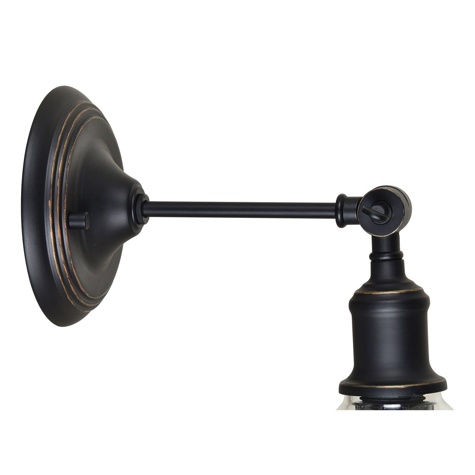 Wall SconceIronOil RubbedBronze FinishClearGlass ShadeHardwiredMax. 60WE26 SocketPivots 90°Net Weight: 2lbs.Gross Weight: 3lbs.. Dimensions: