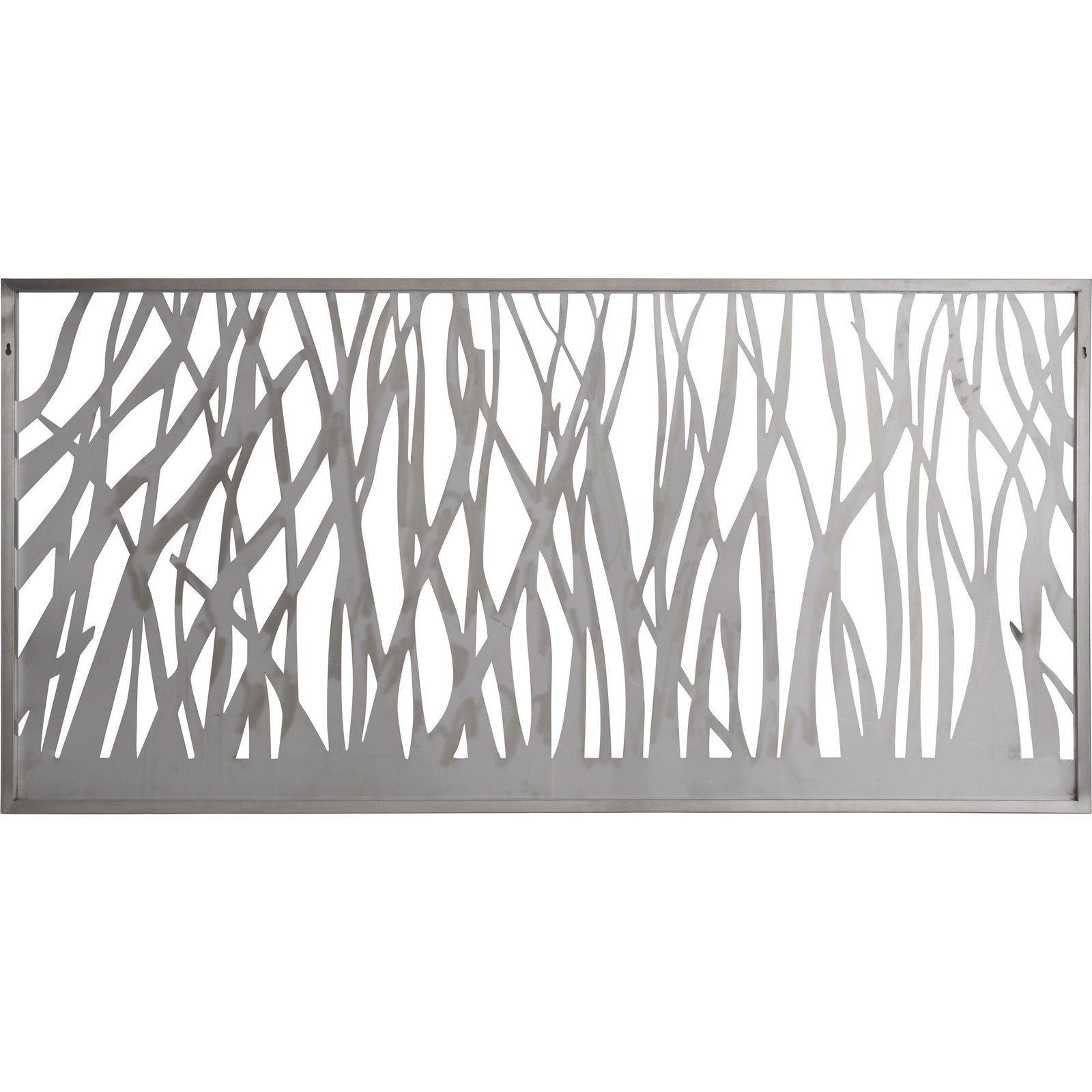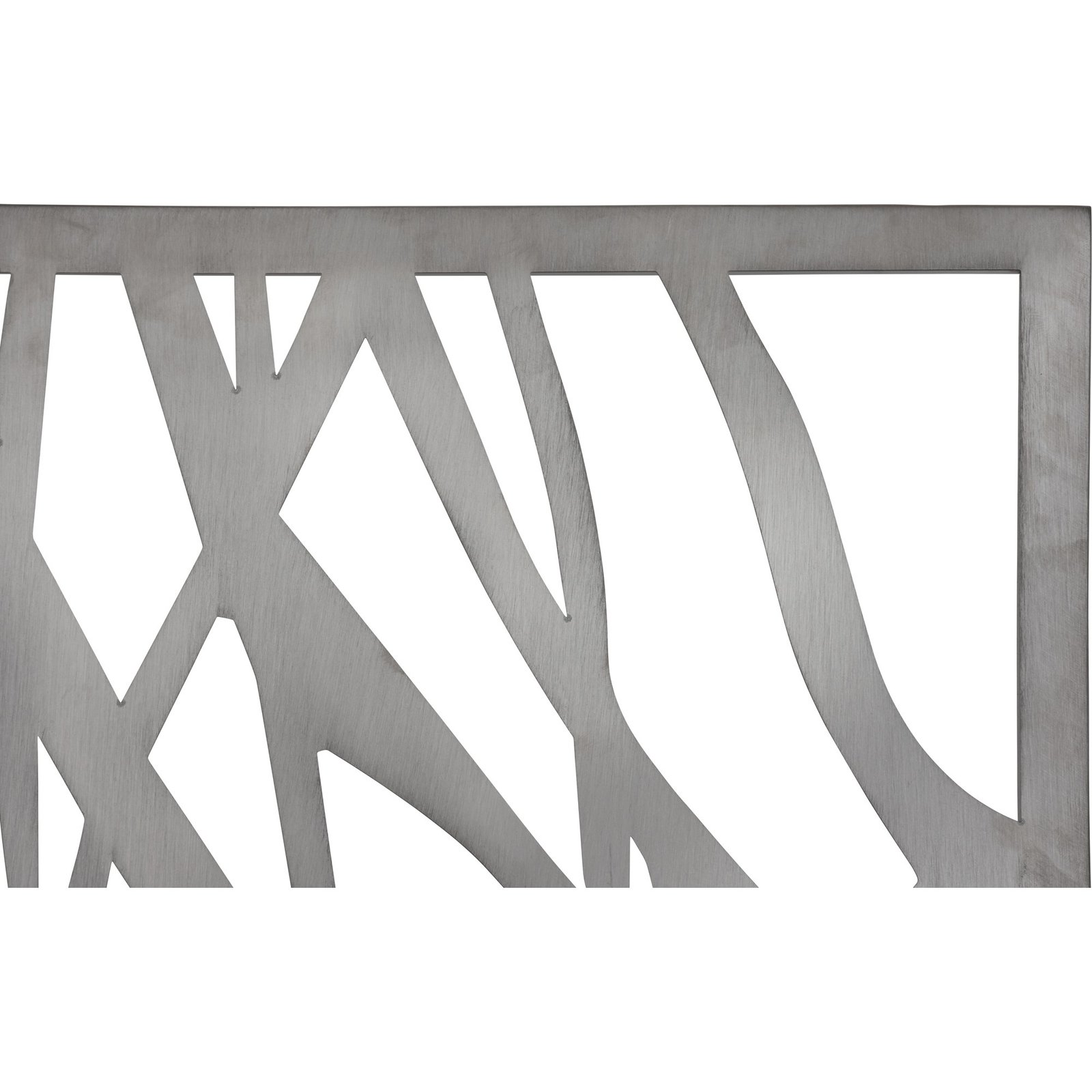 Stainless Steel – Brushed Plated Nickel Finish. Dimensions: 59″W X 29.5″H X 1″D