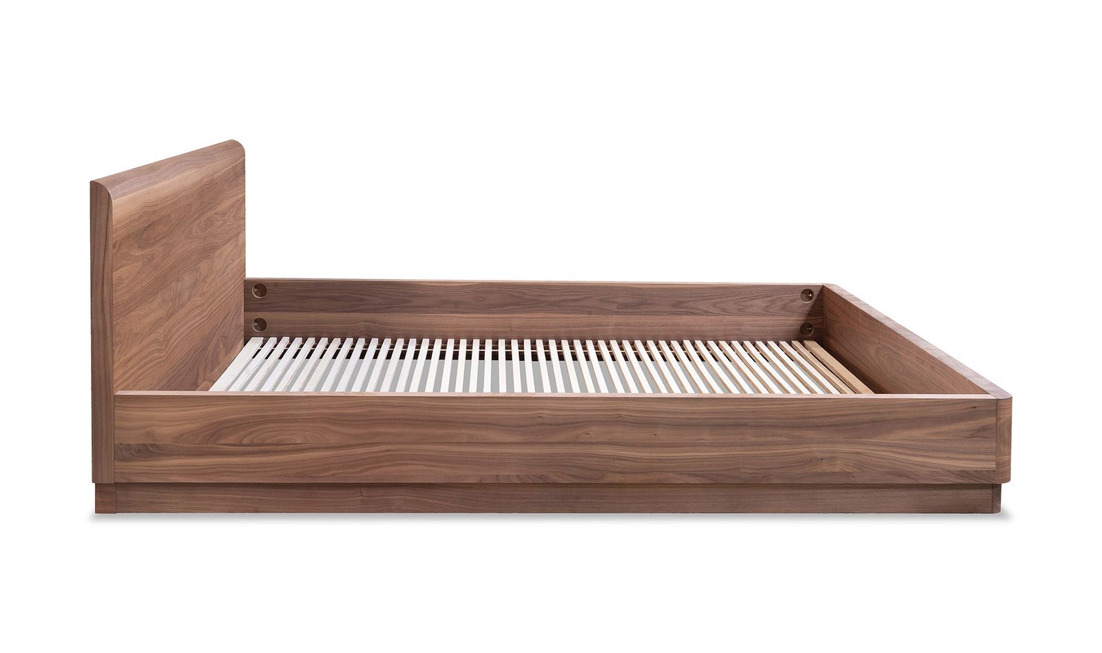A soft natural look for your bedroom. The Round Off collection is a showcase of walnut with the beautiful dark tones of the grain matched to a simple comforting design. This bed comes in queen and king and features a low build and softly rounded corners with a headboard sideboards and footboard that perfectly frames your mattress. As part of the Round Off bedroom collection pair it with the nightstand and dresser for the complete look. Natural beauty and character come together to promote mellow relaxation in the most personal room of your home.. Dimensions: 64.0? W X 84.0? D X 30.0? H