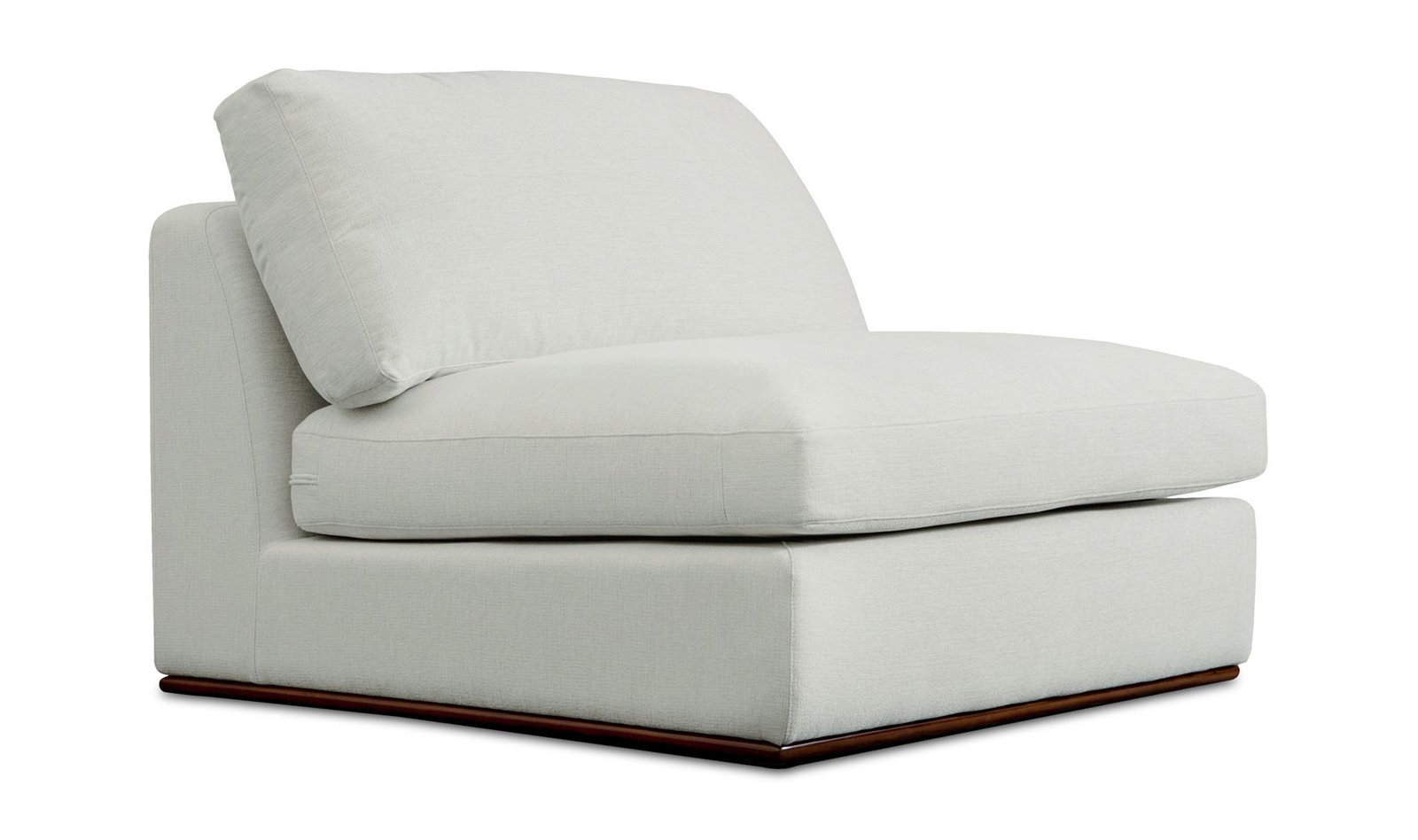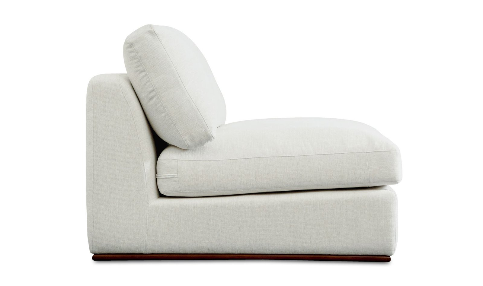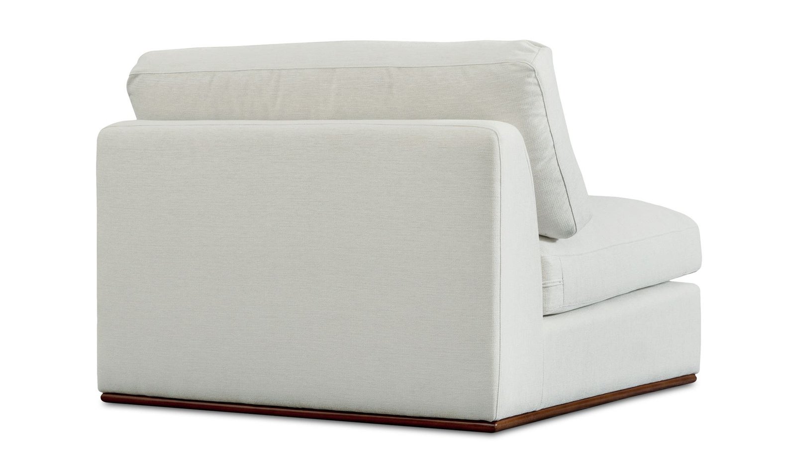 The Rue chair features a generous 70% feather-fill topper within its seat for an added layer of coziness. Its elegant silhouette is highlighted by a rubber wood base creating a sleek floating appearance all supported by subtle wooden legs. Designed with extreme comfort in mind this modular chair embodies easy neutral styling.. Dimensions: 41.0? W X 41.0? D X 23.6? H