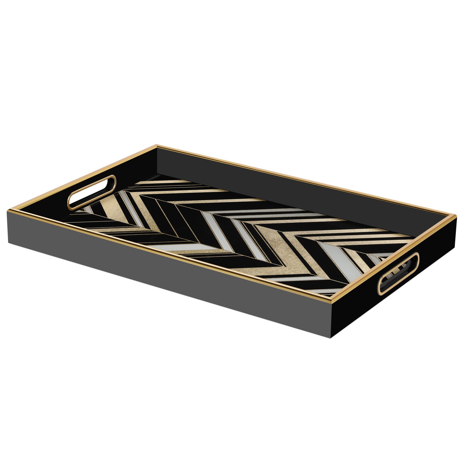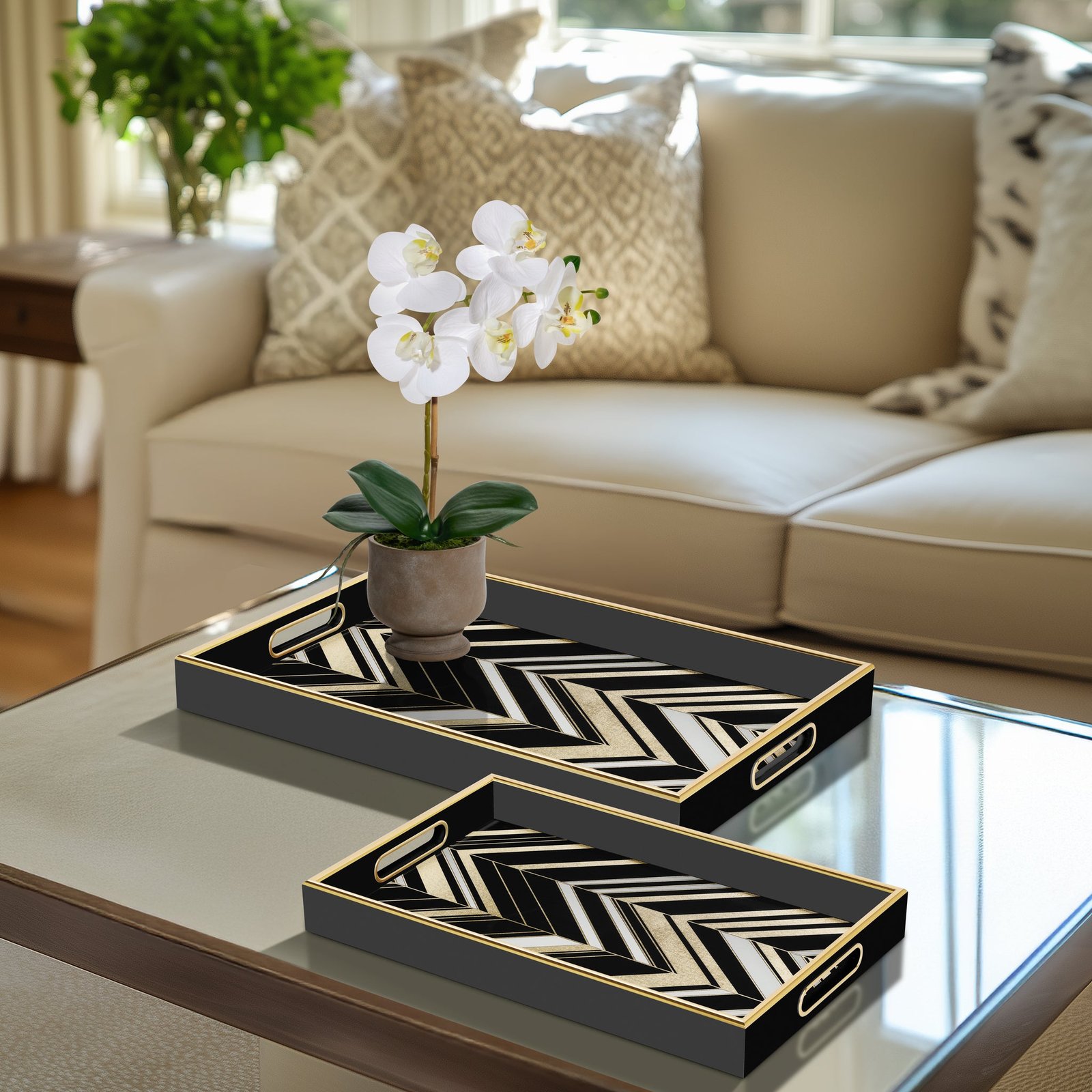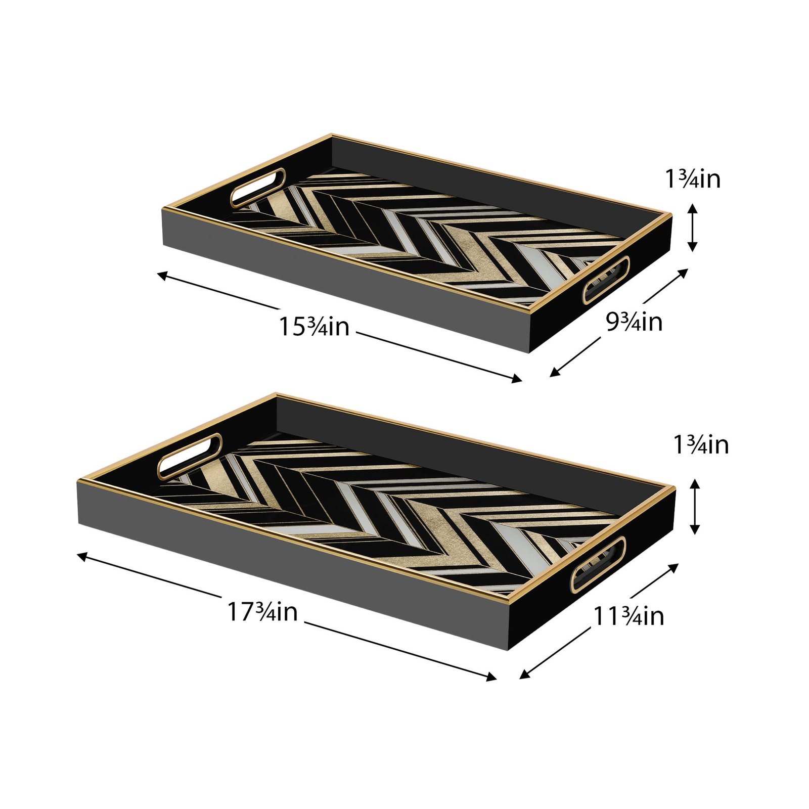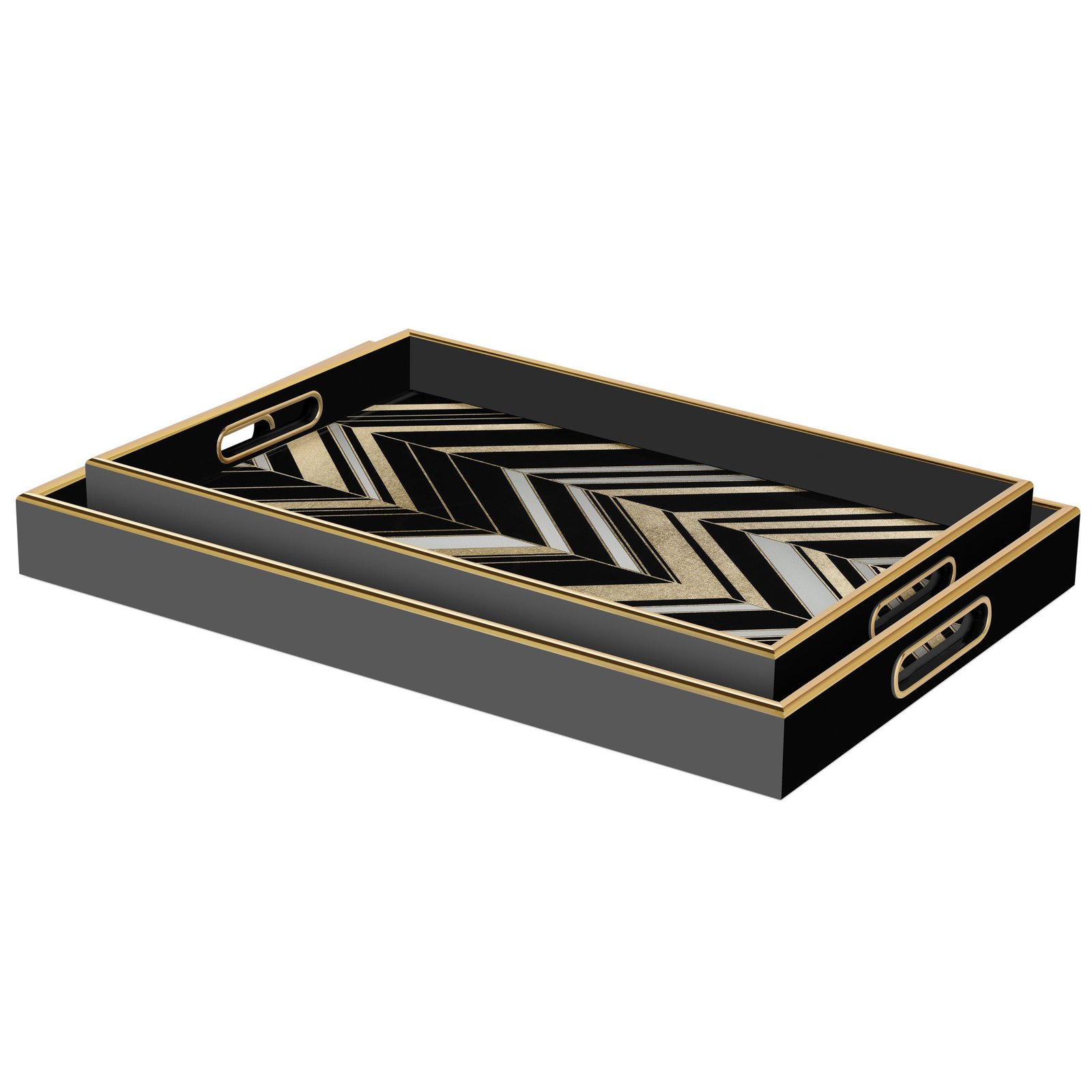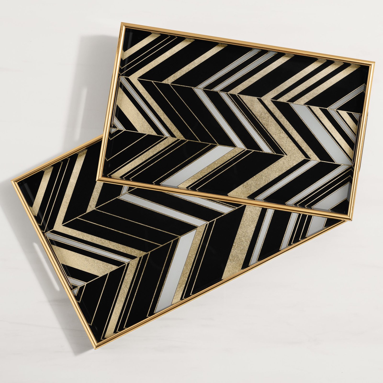 Savoy Gold Trim 2 Piece Rectangle Tray Set – Herringbone