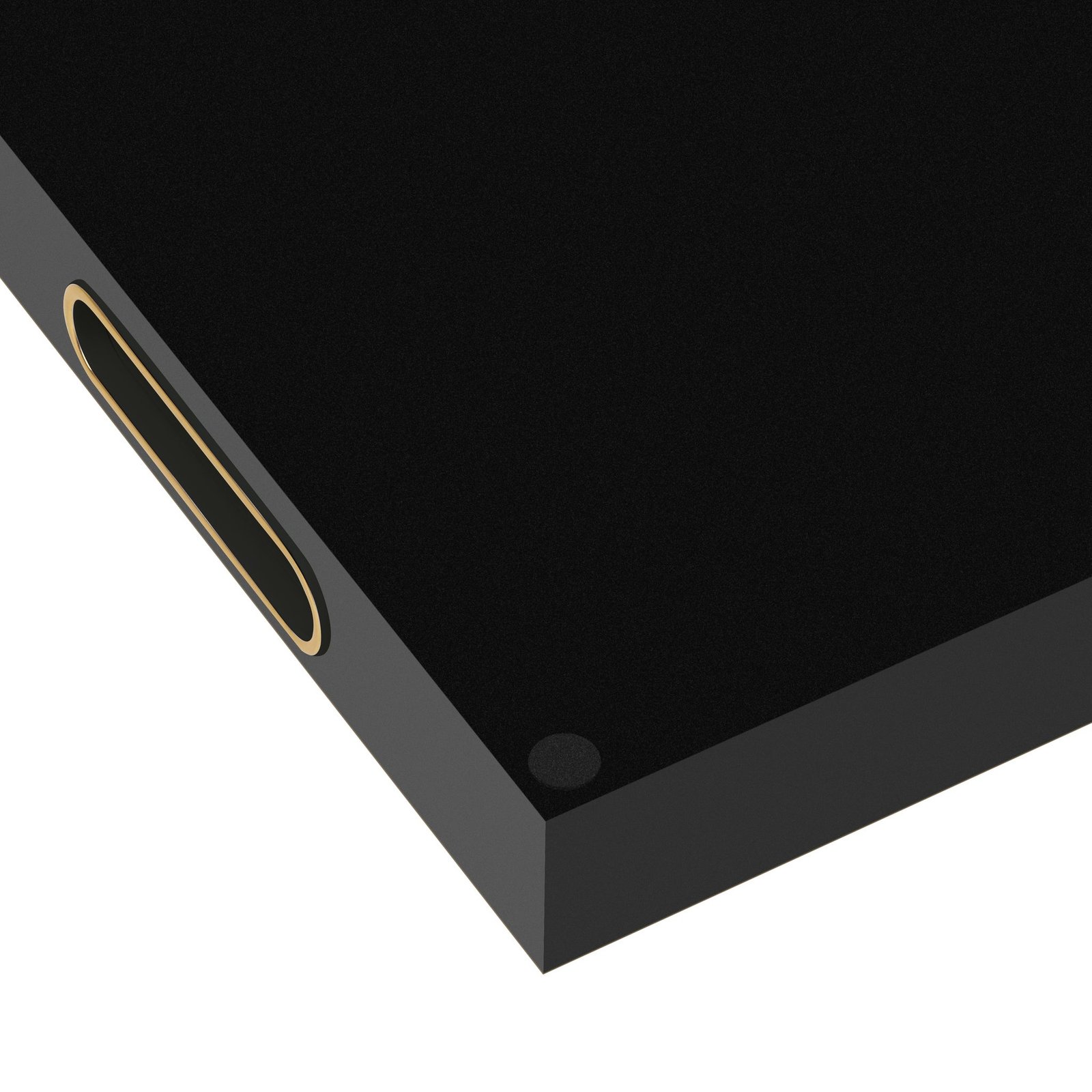The gorgeous Art Deco inspired pattern of these glass top trays make them truly stand out. While they make a perfect serving piece they will make any space shine when used as a decorative accent piece. The plastic trim and glass top makes them easy to care for. Dimensions: Small: 15.75 x 9.75 x 1.75 inch height. Large: 17.75 x 11.75 x 1.75 inch height