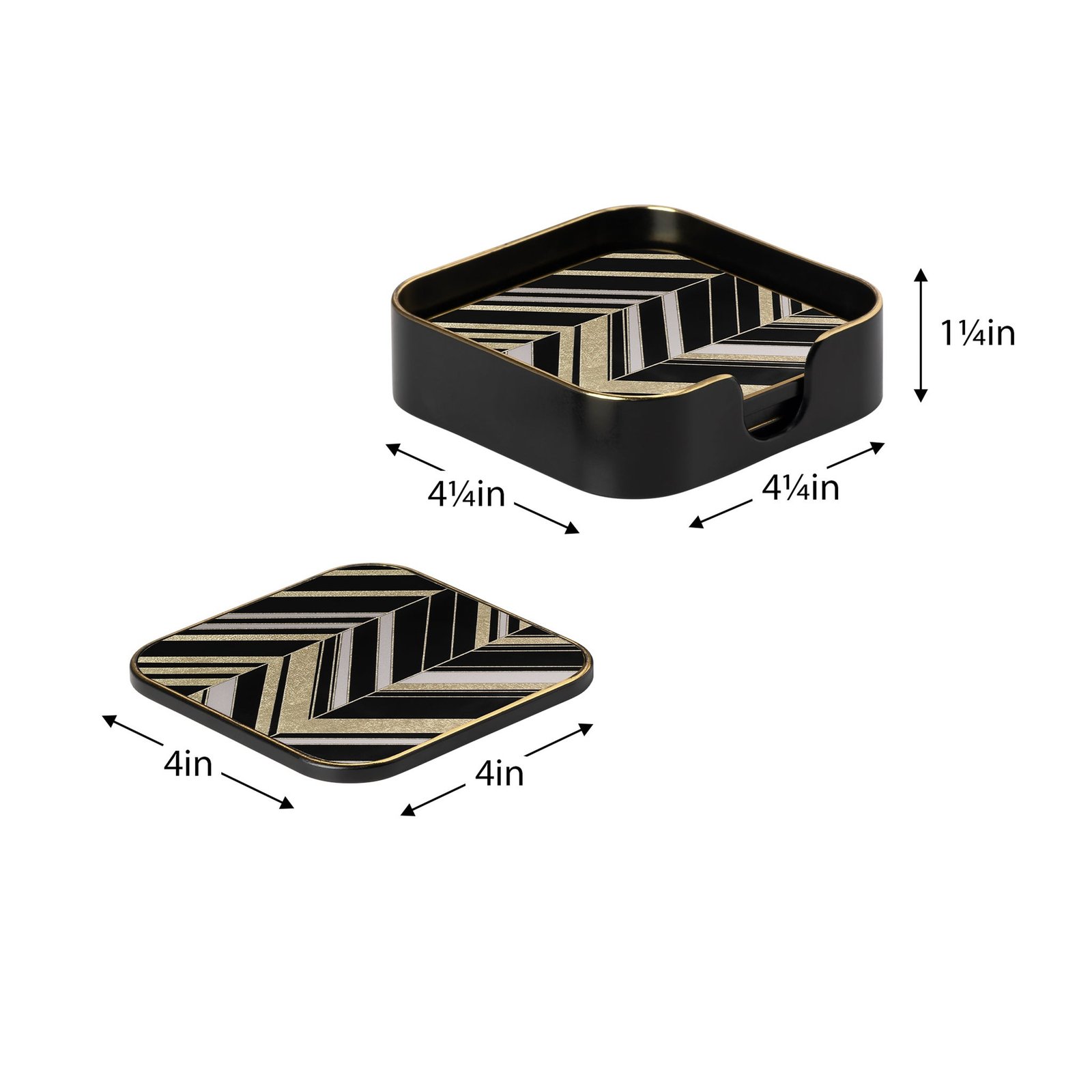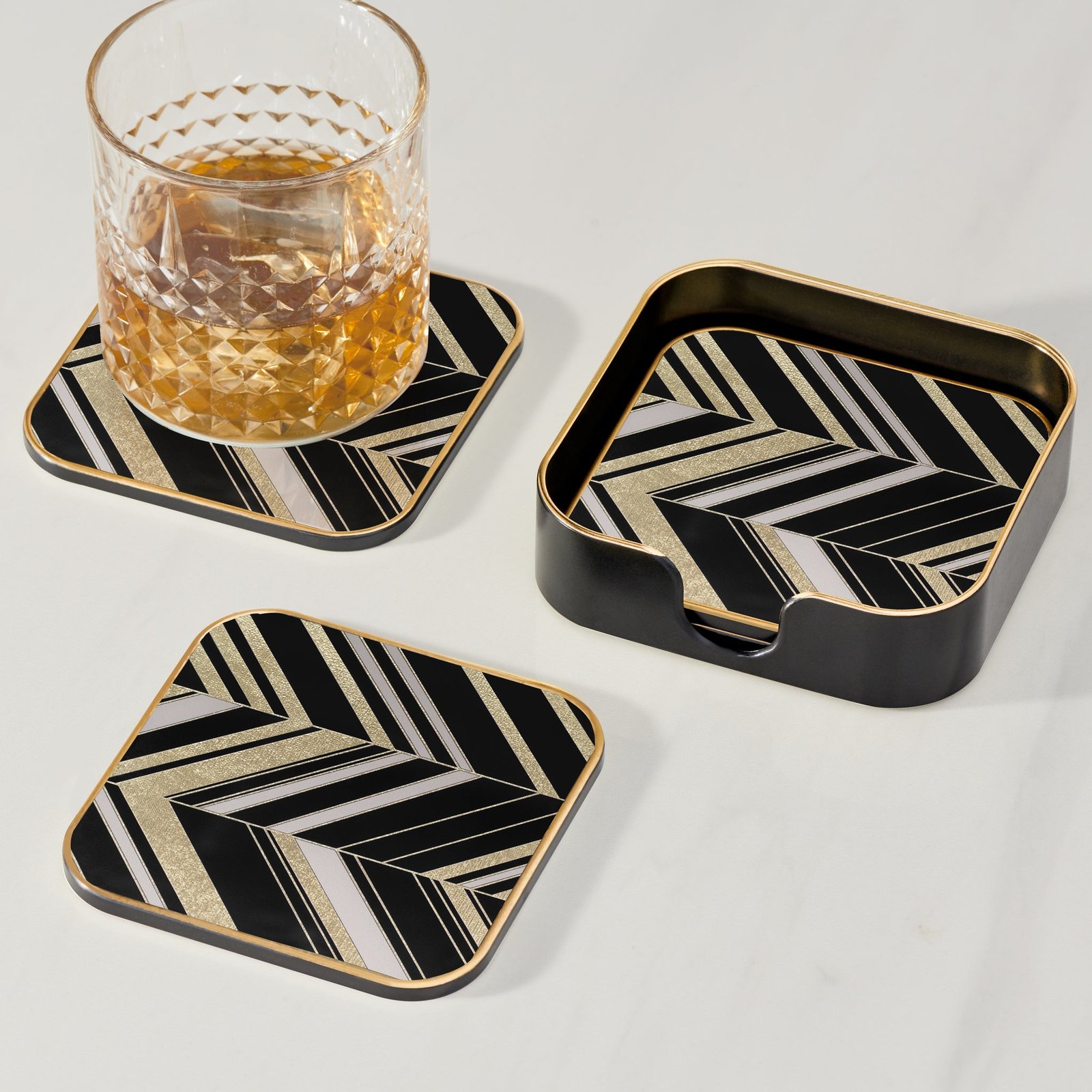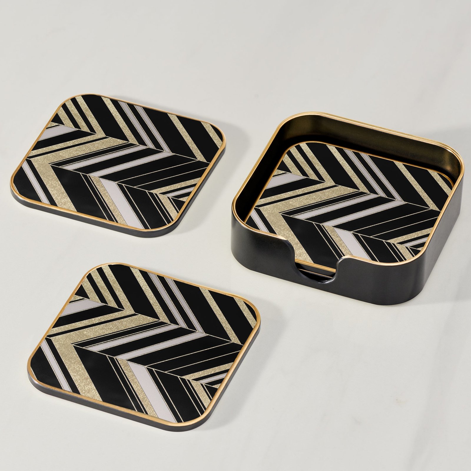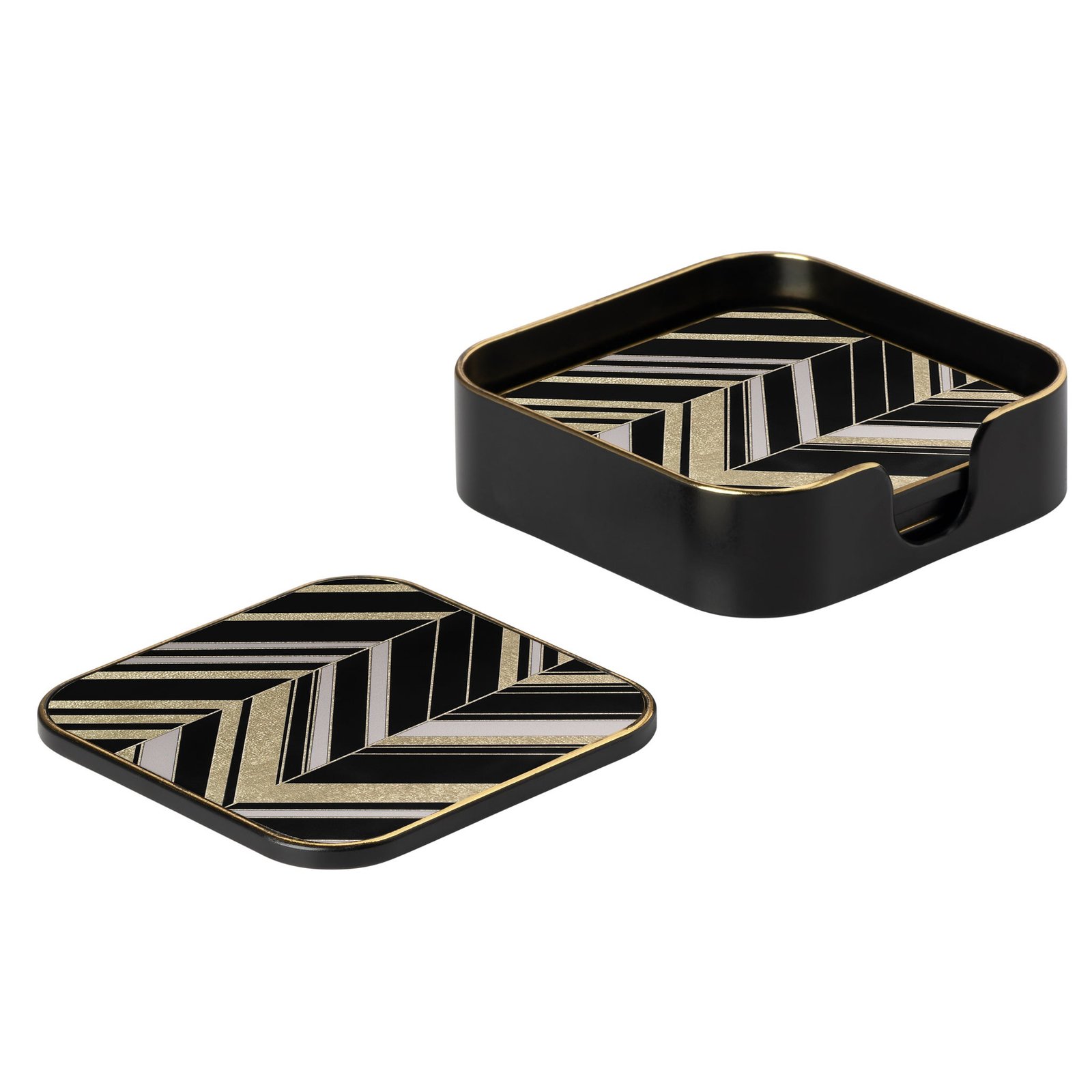 Savoy Gold Trim 4 Piece Square Coaster Set – Herringbone
