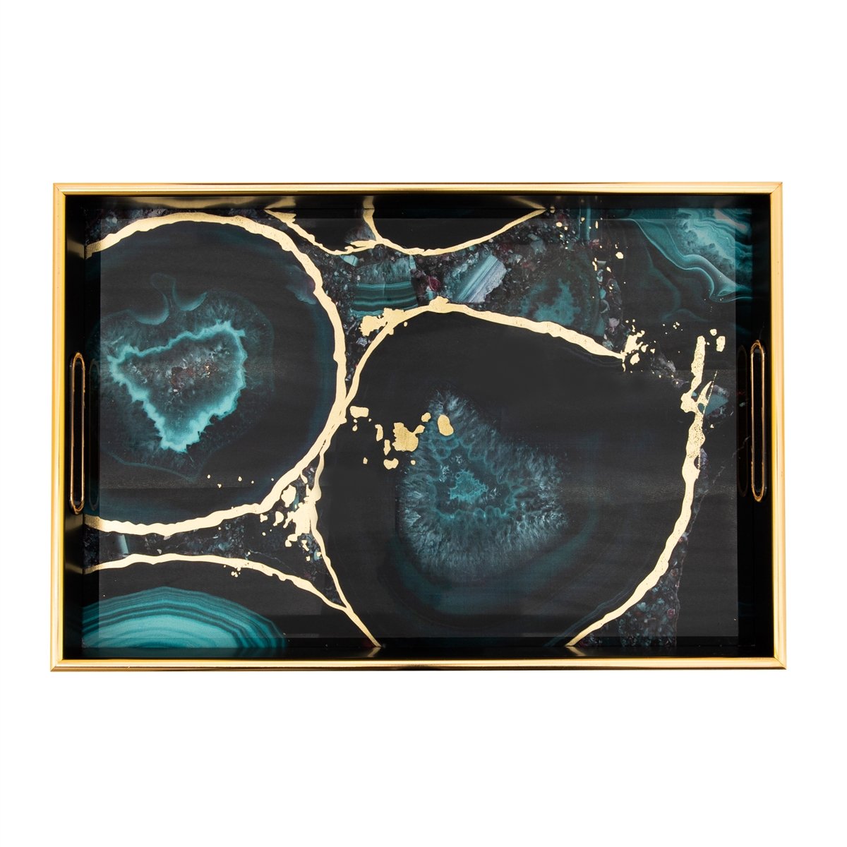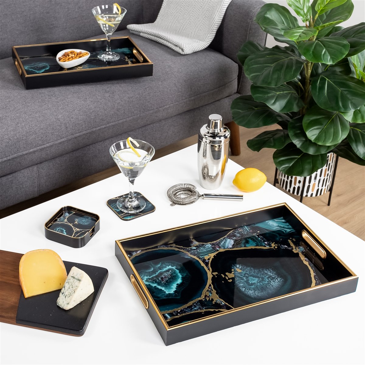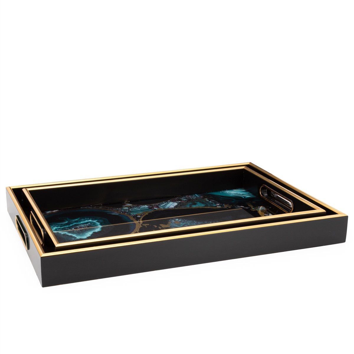 Savoy Gold Trim 2 Piece Rectangle Tray Set – Agate