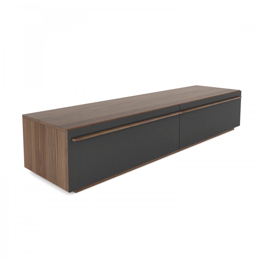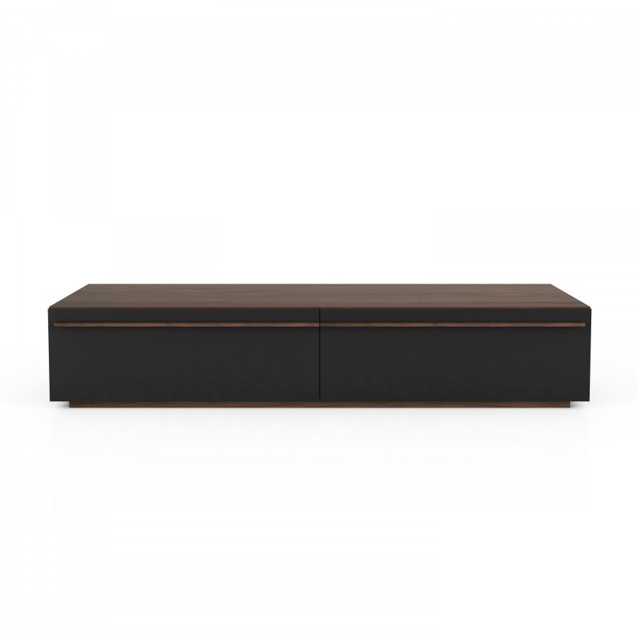 Design Joel Dupras. Made of american black walnut. 1 glass flap door & 1 drawer. Dimensions: 72”W x 191/2”D x 14”H