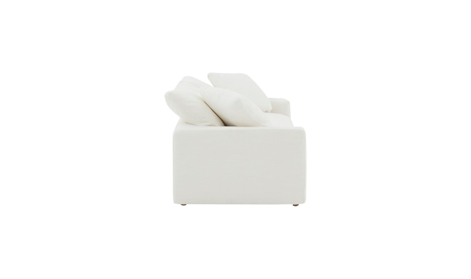 Introducing the 2 and 1 Half Seater Sofa in Cream: The Perfect Blend of Durability and Comfort. Transform your living space with our bench seat version of the 2 and 1 Half Seater Sofa. This sofa is thoughtfully designed to be both durable and comfortable while maintaining a streamlined appearance that adds a touch of sophistication to any room. Its deep pillowy seats beckon you to sink in and relax while the signature stain-resistant fabric ensures that snacks and pets are always welcome. Embrace the casual yet timeless charm of this piece that you’ll love for years to come. Sink-in Comfort: Experience unparalleled comfort and room to sprawl with plush feather-fibre cushions that offer a cozy and inviting seating experience. LiveLife? Performance Fabric: Our sofa is upholstered with LiveLife? performance fabric known for its stain-resistant moisture-repellent soft and breathable properties. Enjoy a textured surface and dimensional color coupled with a luxuriously soft feel. Easy Maintenance: Fully removable upholstery covers including the frame covers make it effortless to keep your sofa in great shape. Whether you need to clean up spills or want to freshen up the appearance caring for your sofa is a breeze. Relaxed Silhouette for Any Space: The sofa’s relaxed silhouette effortlessly complements any interior style. For those seeking a more polished look simply fluff the cushions to maintain a well-groomed appearance. Plush Feather-Fibre Cushions: Our plush cushions are filled with a cleverly channeled insert containing a feather-fibre blend that keeps the fill in place preventing feathers from escaping. Expect next-level comfort that truly pulls you in. Family-Friendly and Environmentally Conscious: All of our signature LiveLife? fabrics are breathable moisture-repellent and stain-resistant offering long-lasting barrier protection. With 40x less bioaccumulation than Scotchgard and biodegradability in landfills it’s a win for both the environment and you. Care Instructions: For easy maintenance soak up spills with a paper towel. For tougher stains wash with mild soap and water. Cushion covers can be dry cleaned or machine washed in a cold gentle cycle. Please note that pillows with feather filling require more maintenance than other types of fills. We recommend fluffing and flipping your pillows regularly to help them maintain their shape. Quality Frame Design: The sofa’s frame is crafted with a larger amount of multi-density foam ensuring comfort and softness. To maintain longevity we recommend taking care with the arms back and frame. Elevate your living space with the 2 and 1 Half Seater Sofa in Cream and embrace a combination of style durability and comfort that will enhance your home for years to come. Experience the bliss of sinking into its plush cushions and trust in the LiveLife? performance fabric for a worry-free seating experience. Order yours today and enjoy the casual elegance and inviting charm of this timeless sofa.. Dimensions: 84.0? W X 40.0? D X 32.0? H