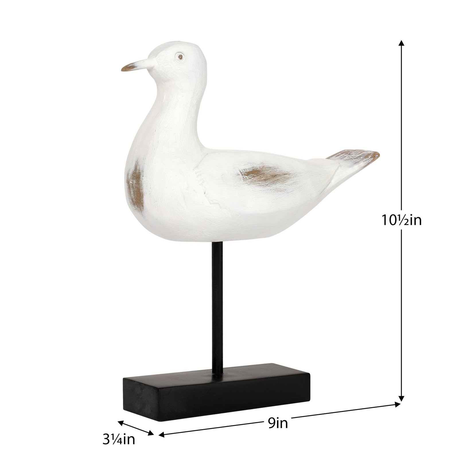 Shore Bird 10.5 Inch Tall Resin Decor Sculpture On Stand – White