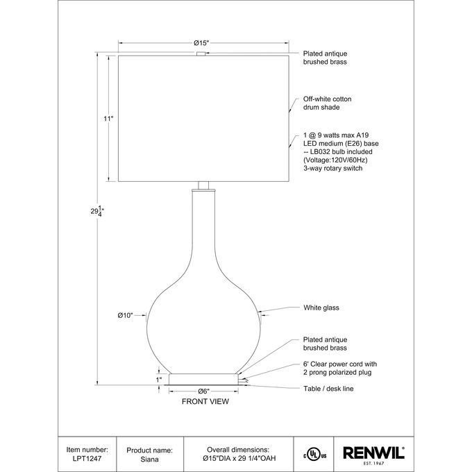Set of 2 – Table lamps – Iron – Powder coated matte black finish – Iron – Gold finish – Ivory linen shade – On/off switch – Max. 60W – E26 socket – LED bulbs included. Dimensions: OAH: 29.25”H – SHADE: DIA-15 X 11”H