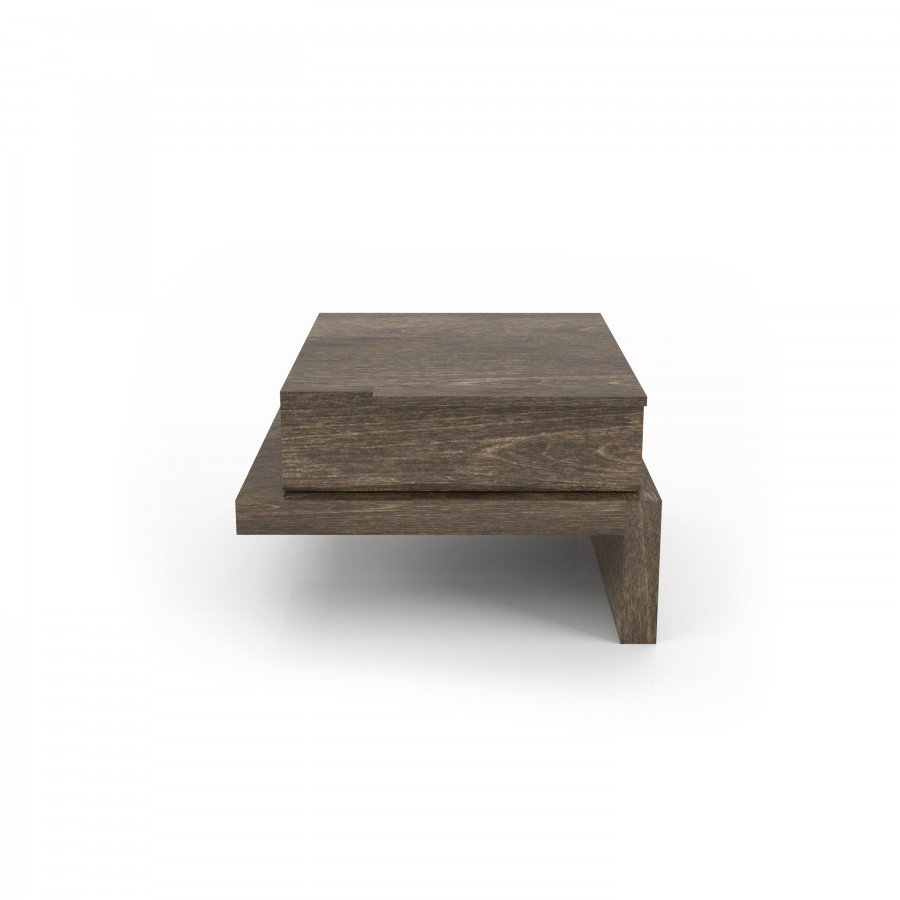 Extended from the bed base this nightstand seems to be hovering above the floor. Equipped with invisible self-closing slides the drawer closes efficiently. Its interior specially treated and stained to match the exterior protects the most delicate articles of clothing. . Dimensions: 213/4″W x 20″D x 131/2″H