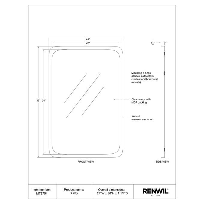 Wall MirrorMimosaceae WoodStained Walnut Finish2-Way HangingWood Color and Grain Will VaryNet Weight: 22.88lbs.Gross Weight: 29.3lbs.. Dimensions: