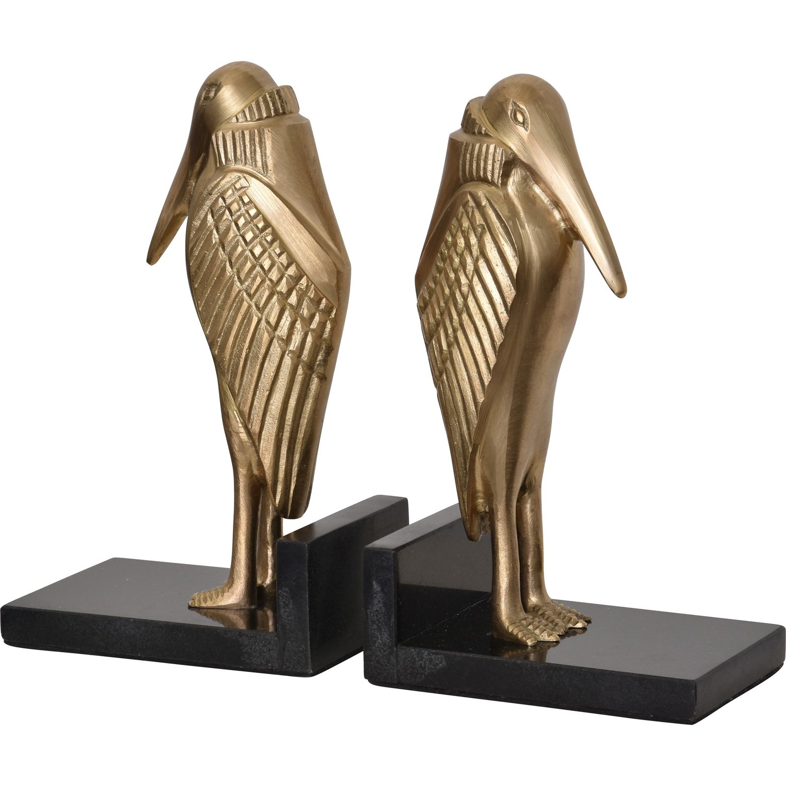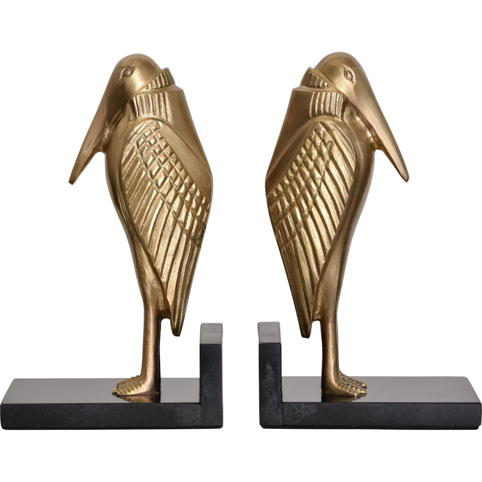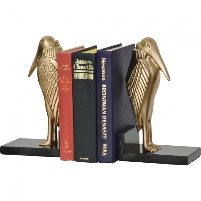 Set Of Two – Bookends – Brass Natural Laquer Finish – Black Granite Base. Dimensions: 12?W X 10.5?H X 4?D
